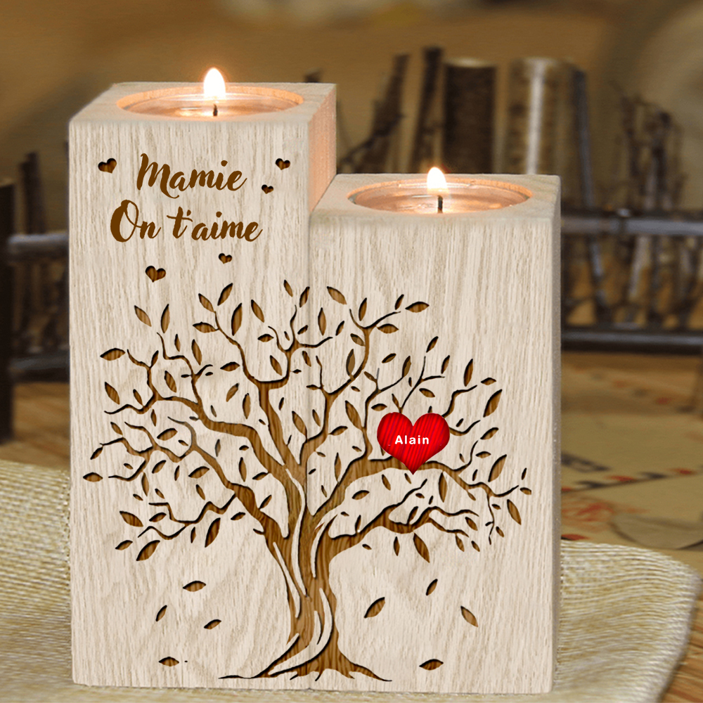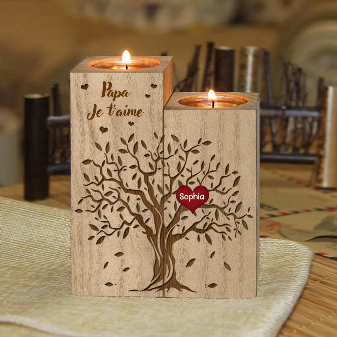 À ma Maman/ Papa /Mamie Bougeoirs en Bois sans bougie Arbre de vie Arbre généalogique 1 Prénom Personnalisé