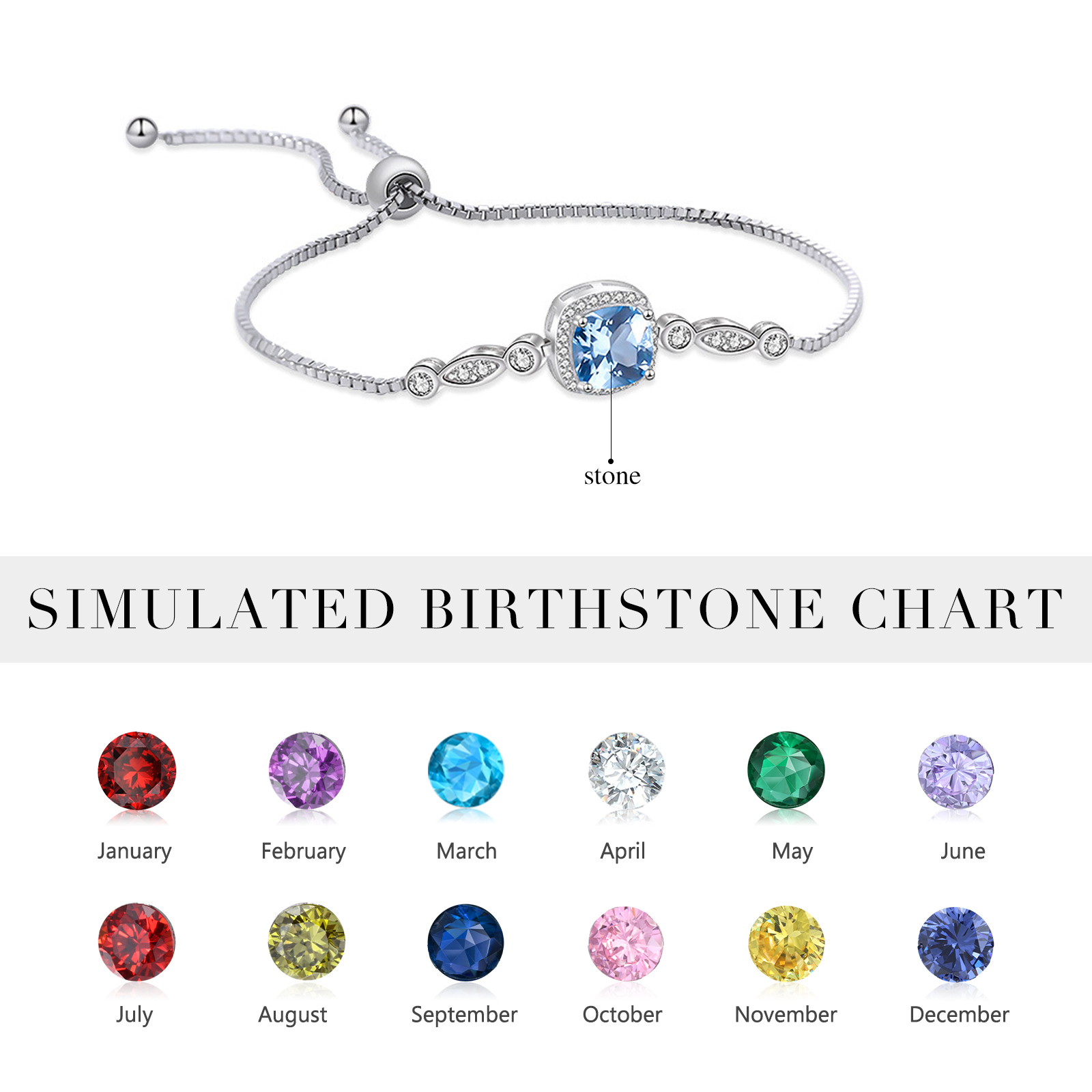 Bracelet en Argent 925 1 Pierre de Naissance