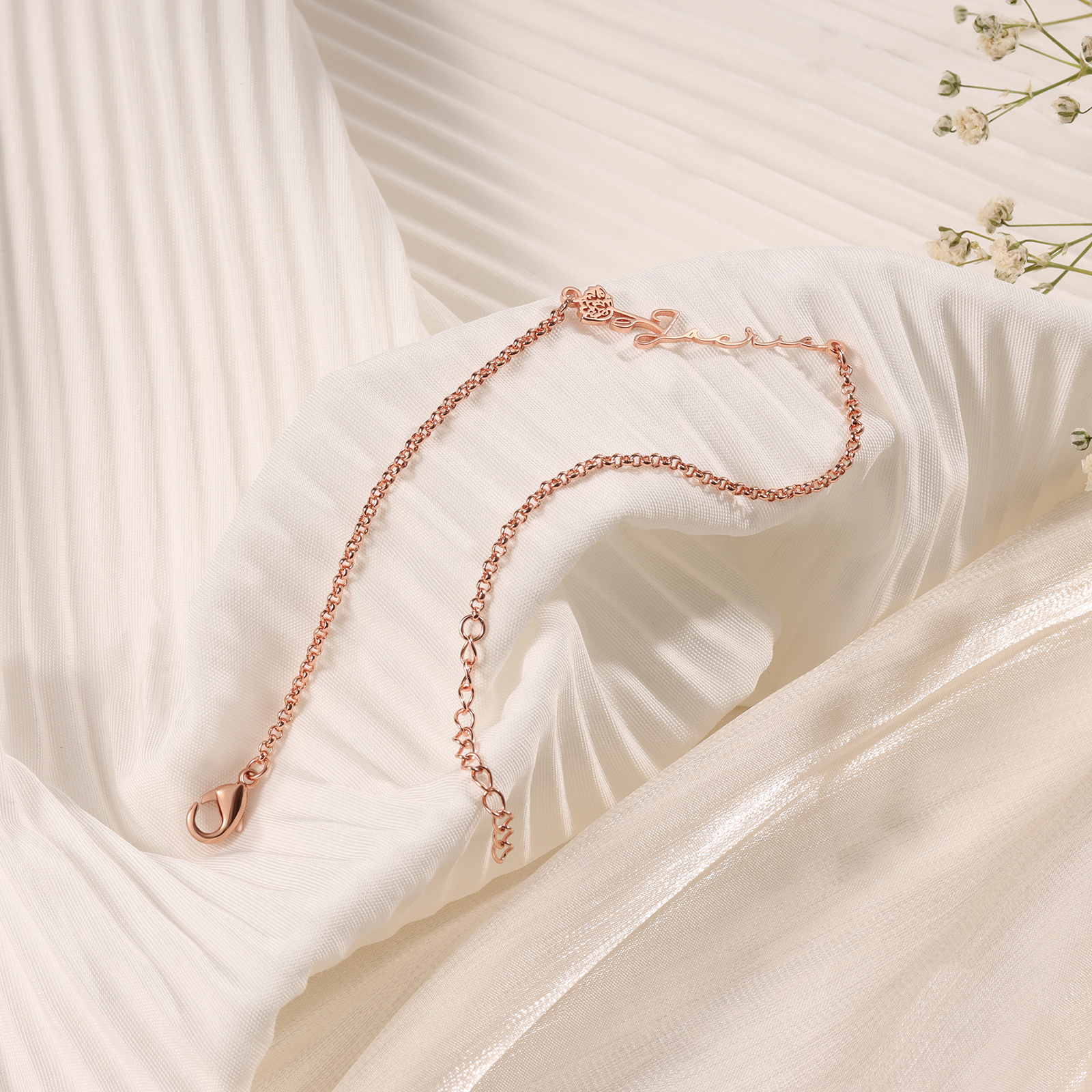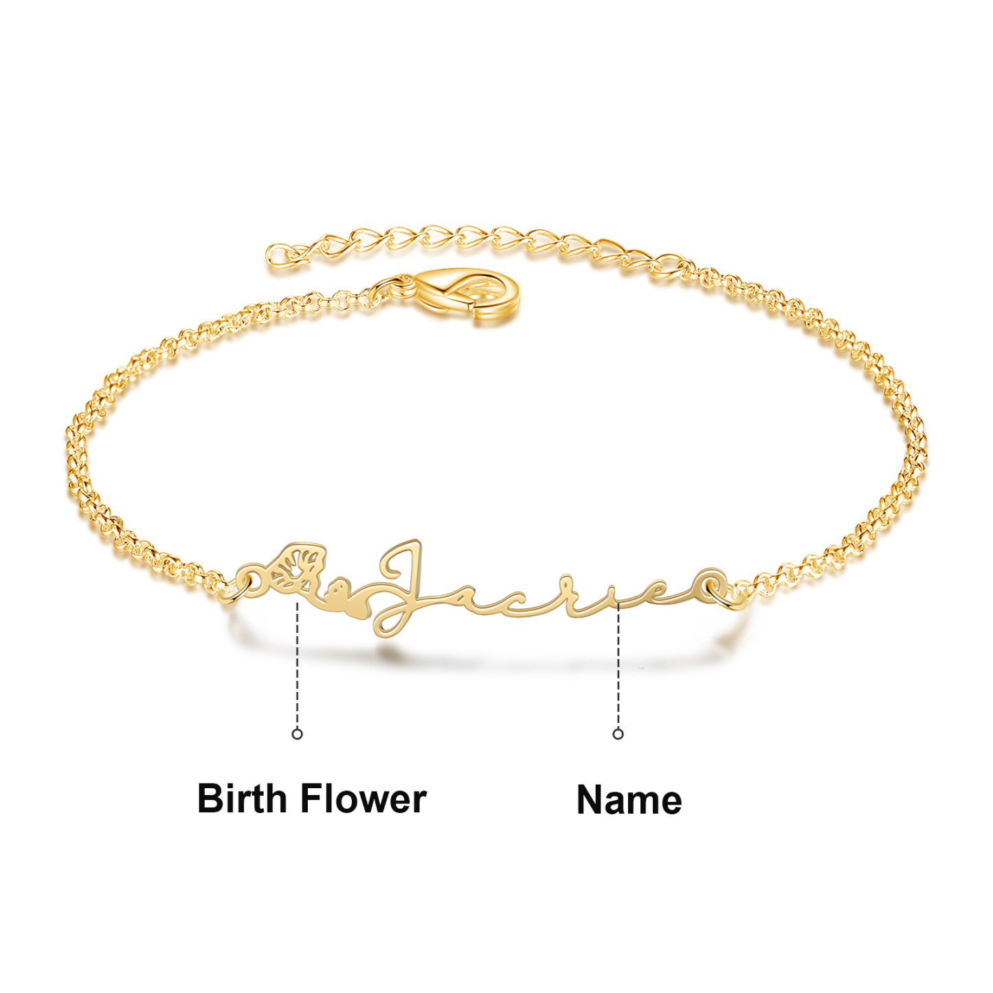 Bracelet 1 prénom personnalisé avec fleurs de naissance pour Femme