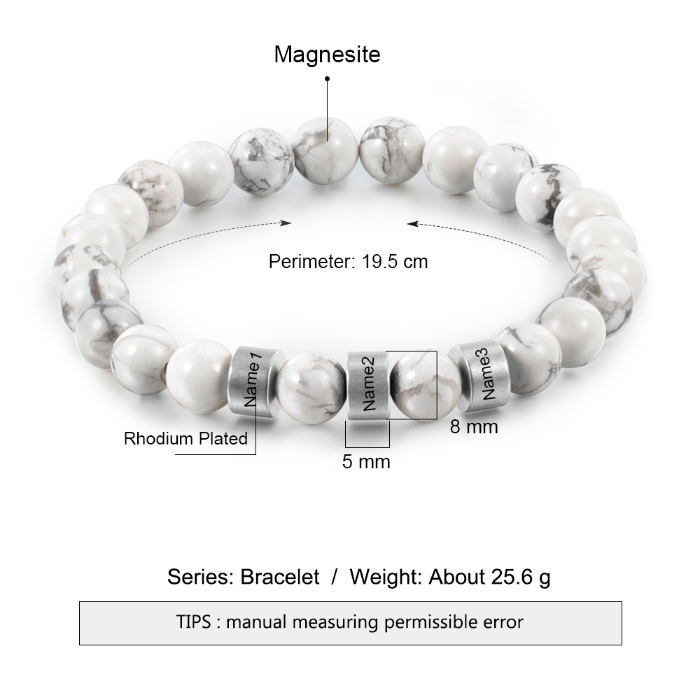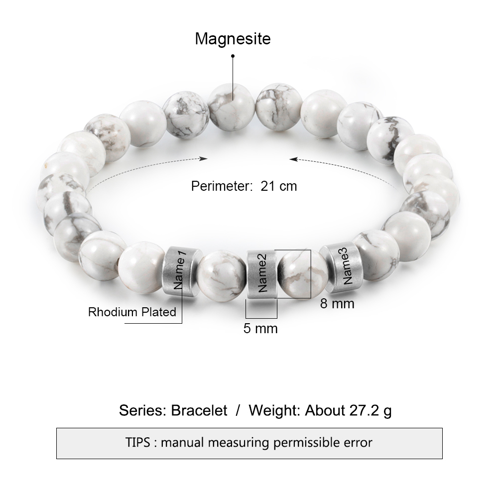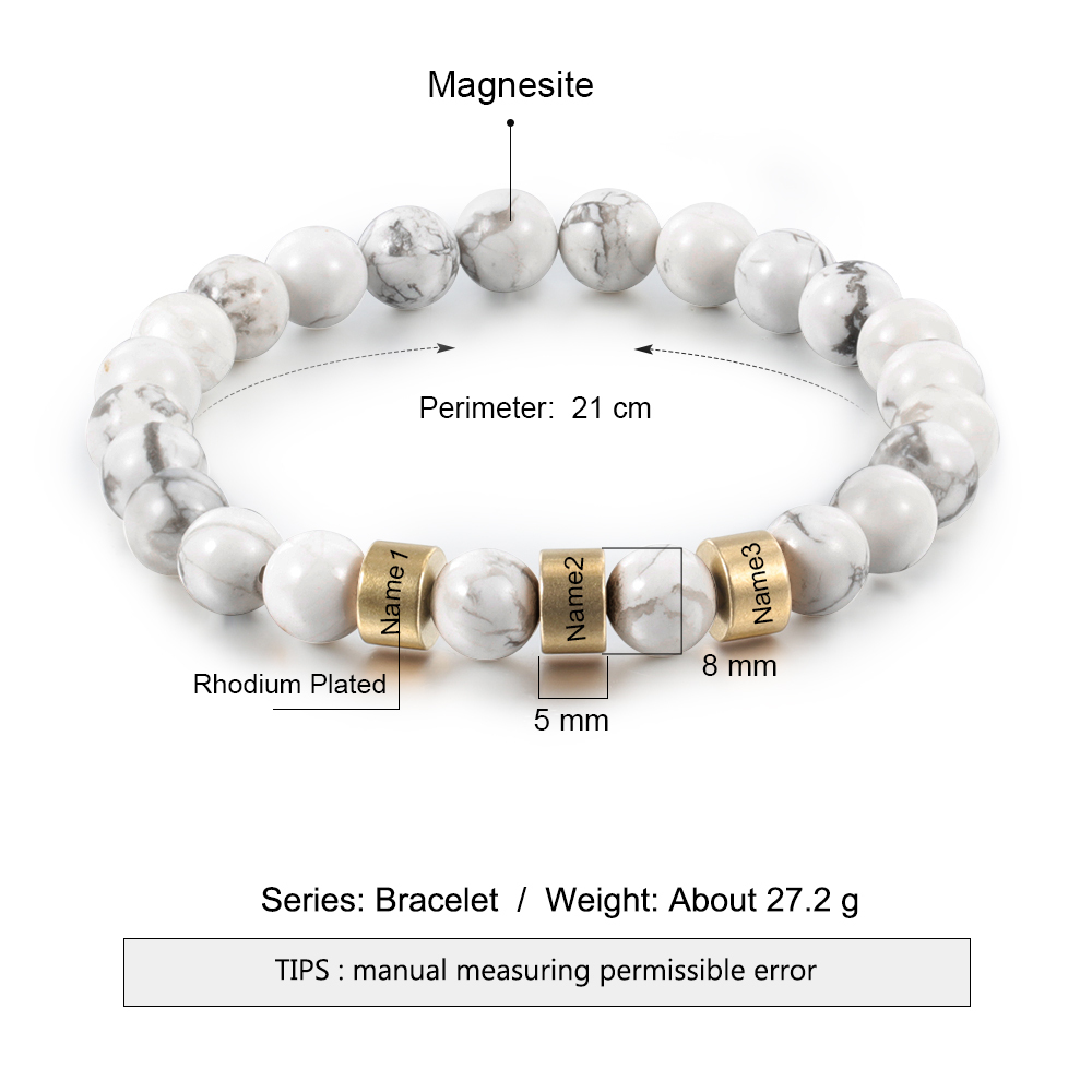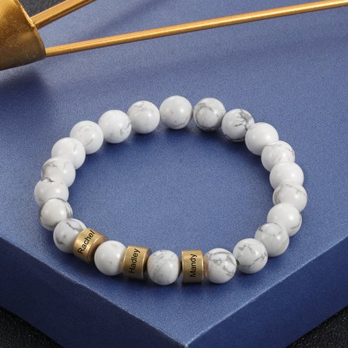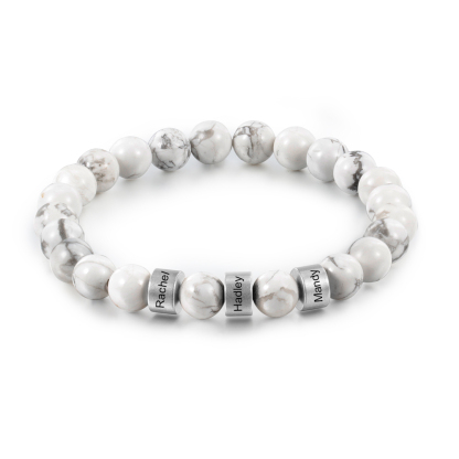 Bracelet 3 Prénom Personnalisé bracelet en howlite blanc