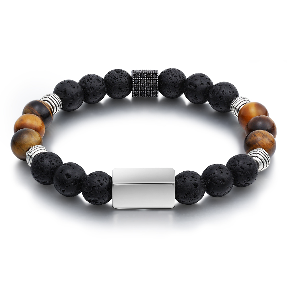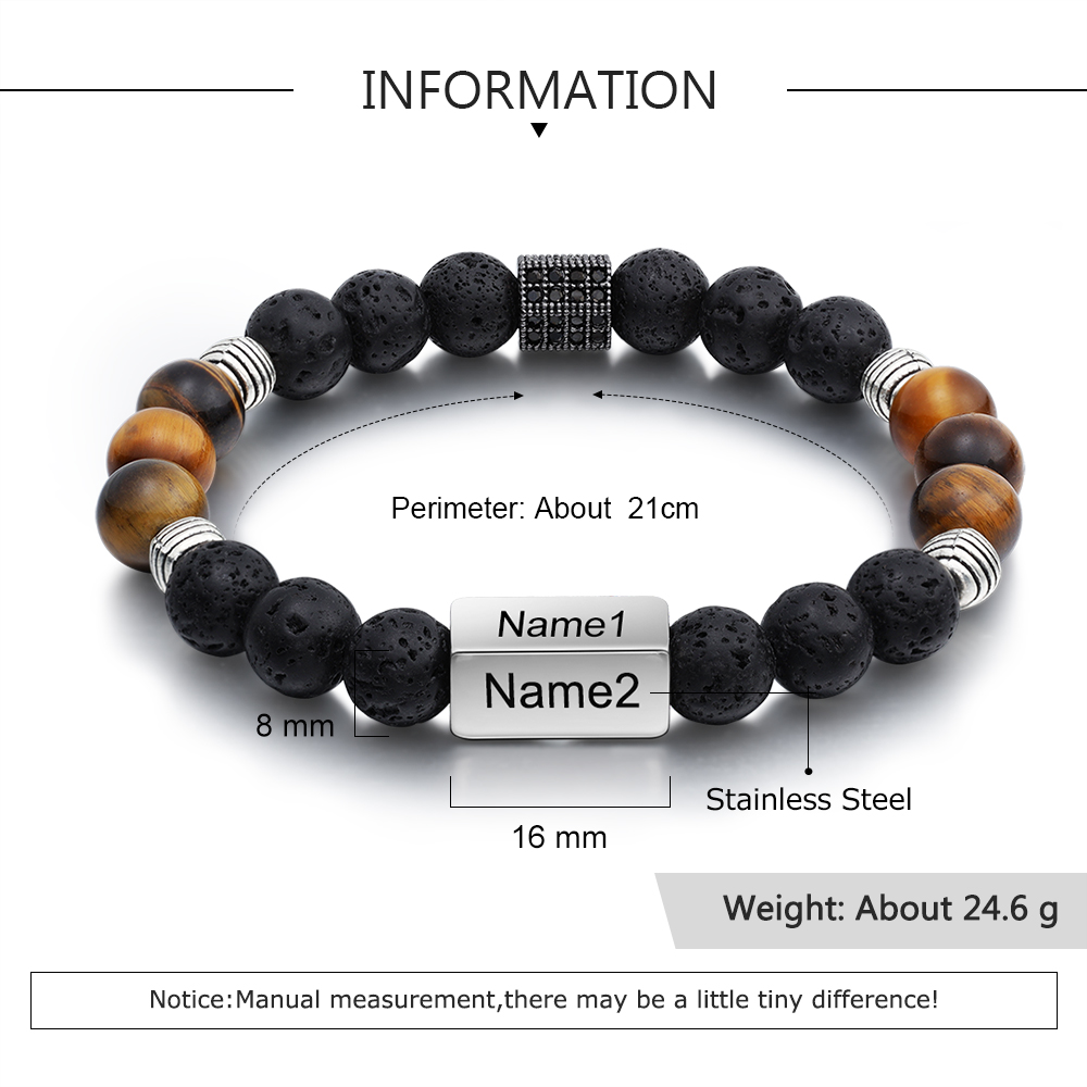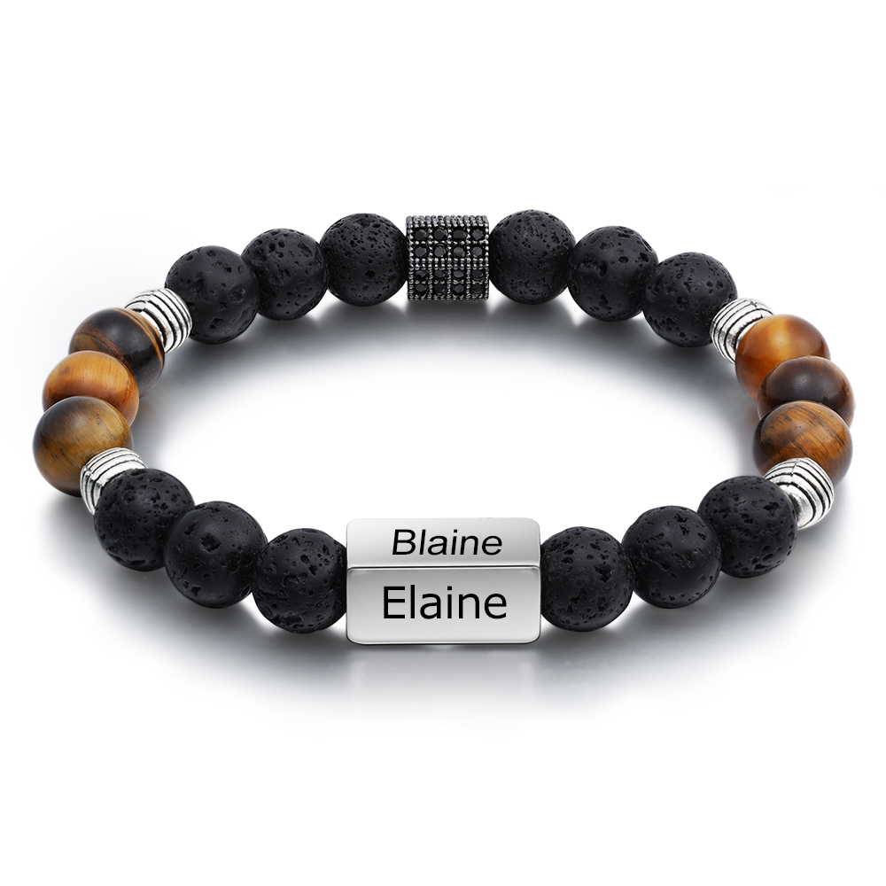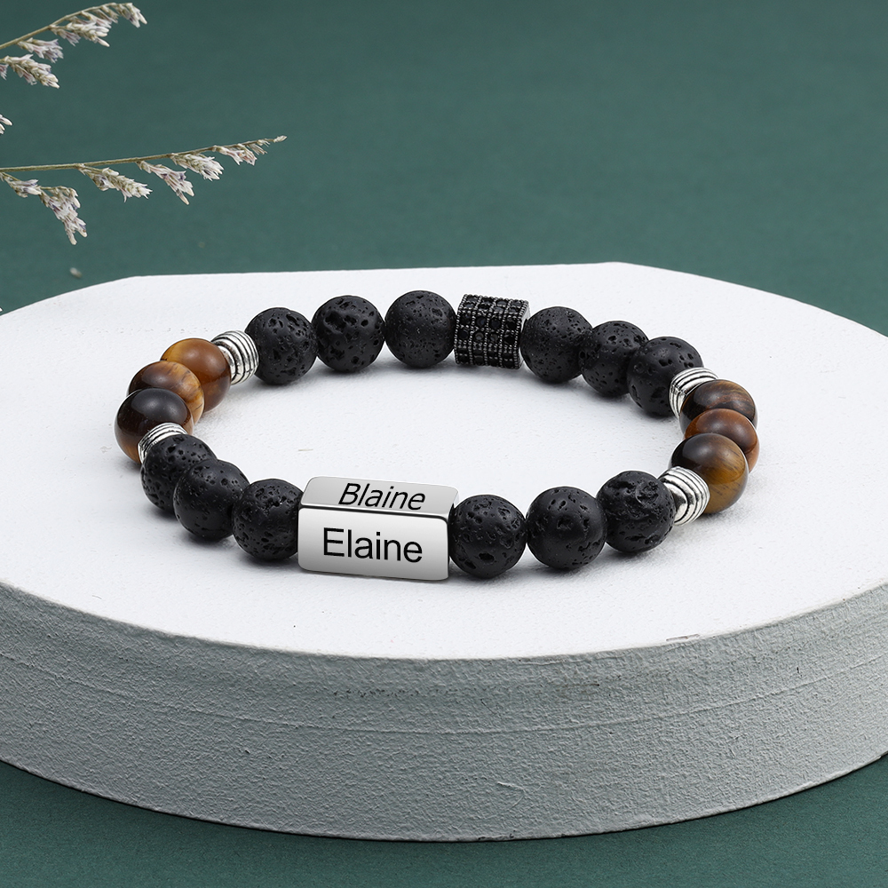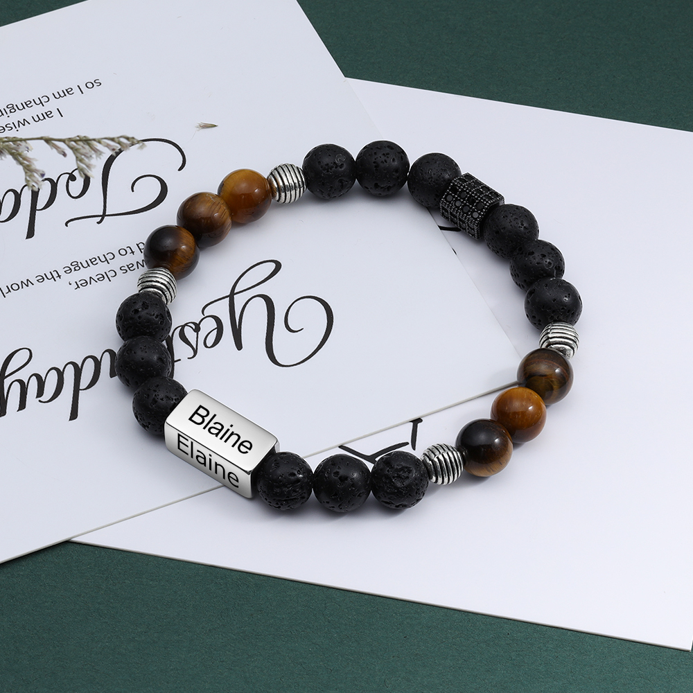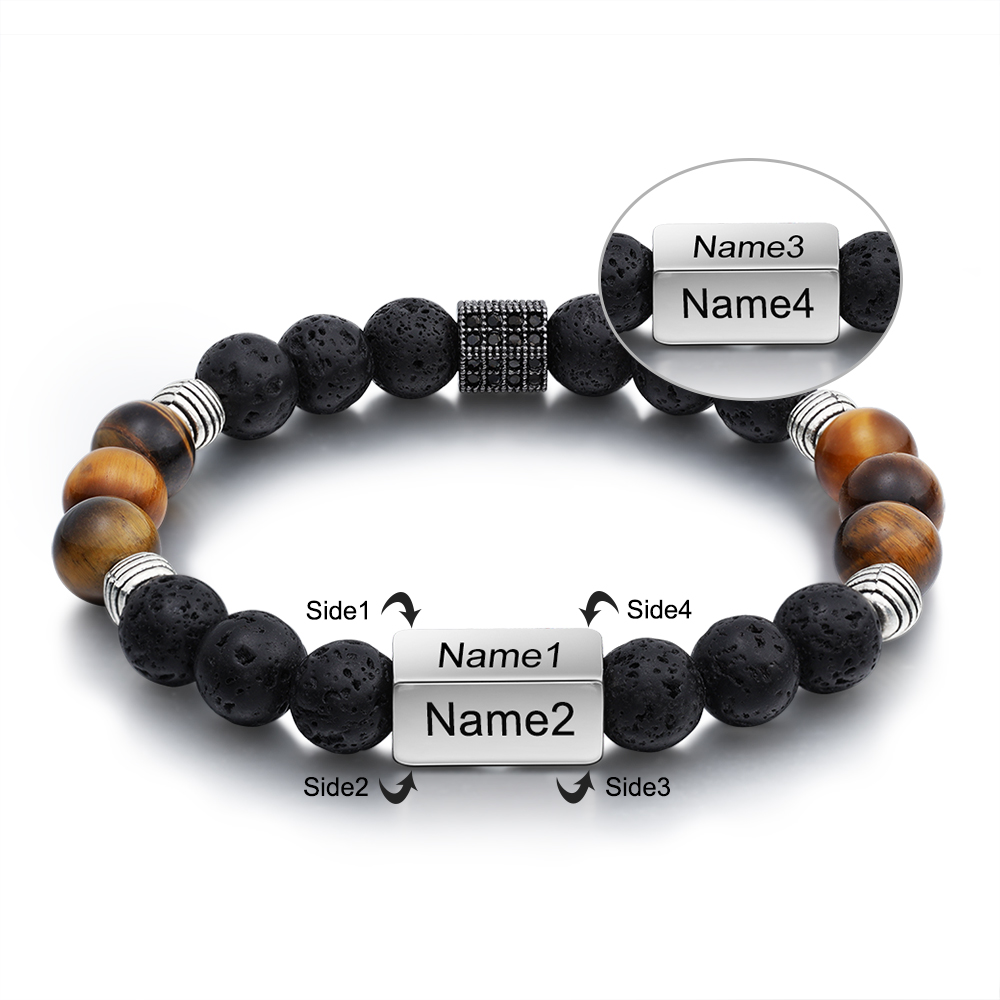 Bracelet 4 Prénom Personnalisé Pierre de lave Noir Bracelet Homme