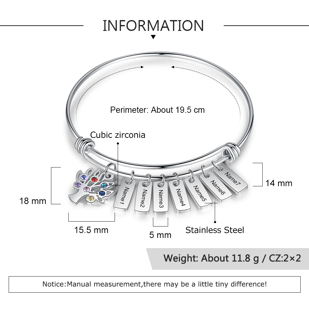 Bracelet Arbre de vie 7 Prénom Personnalisé 7 Pierre de Naissance