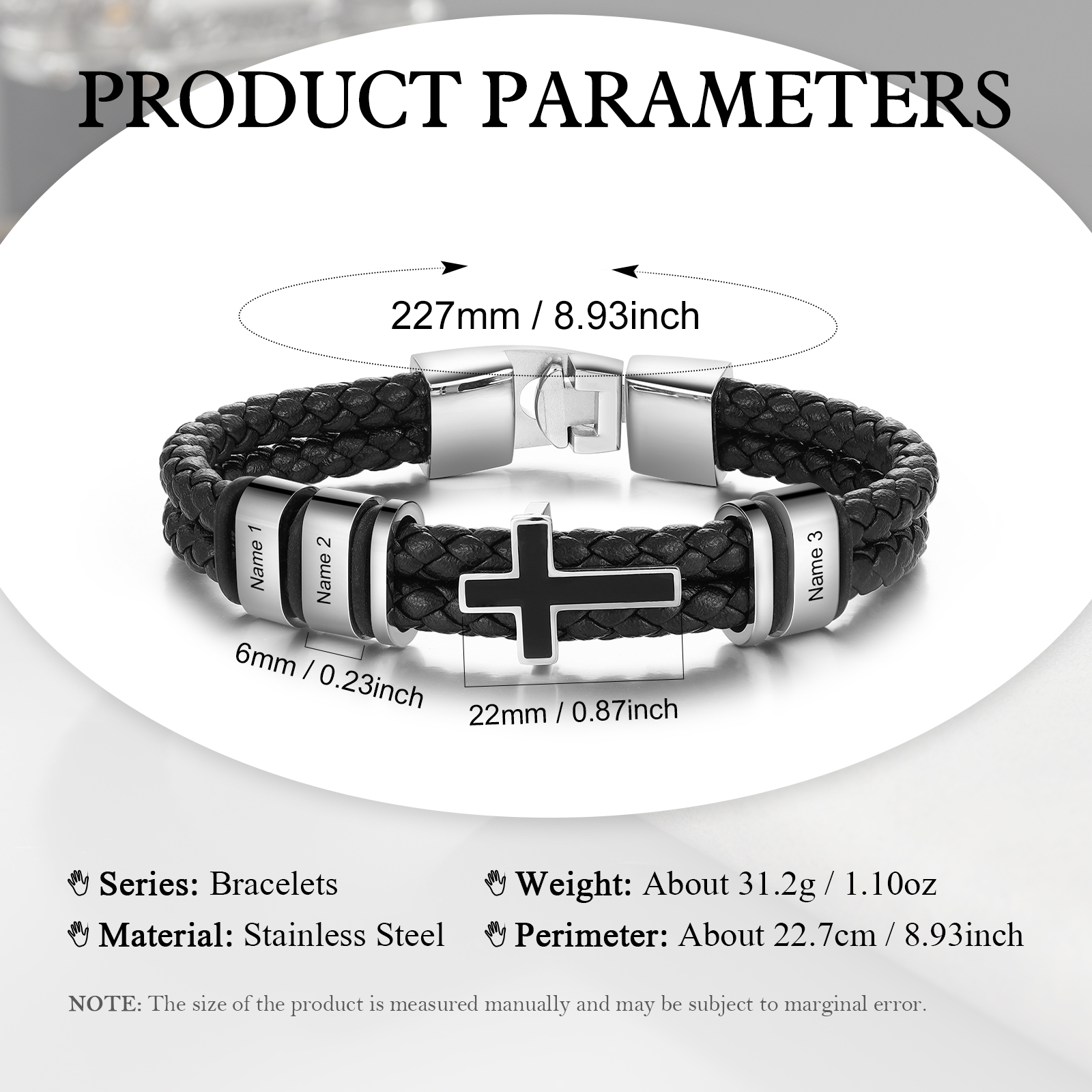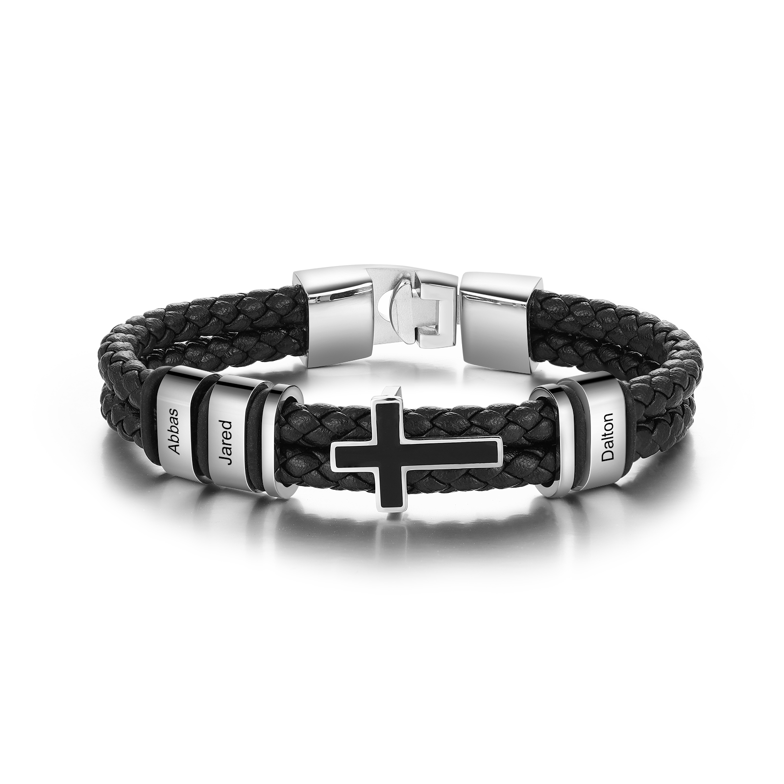 Bracelet Croix en Cuir 3 Prénoms Personnalisés