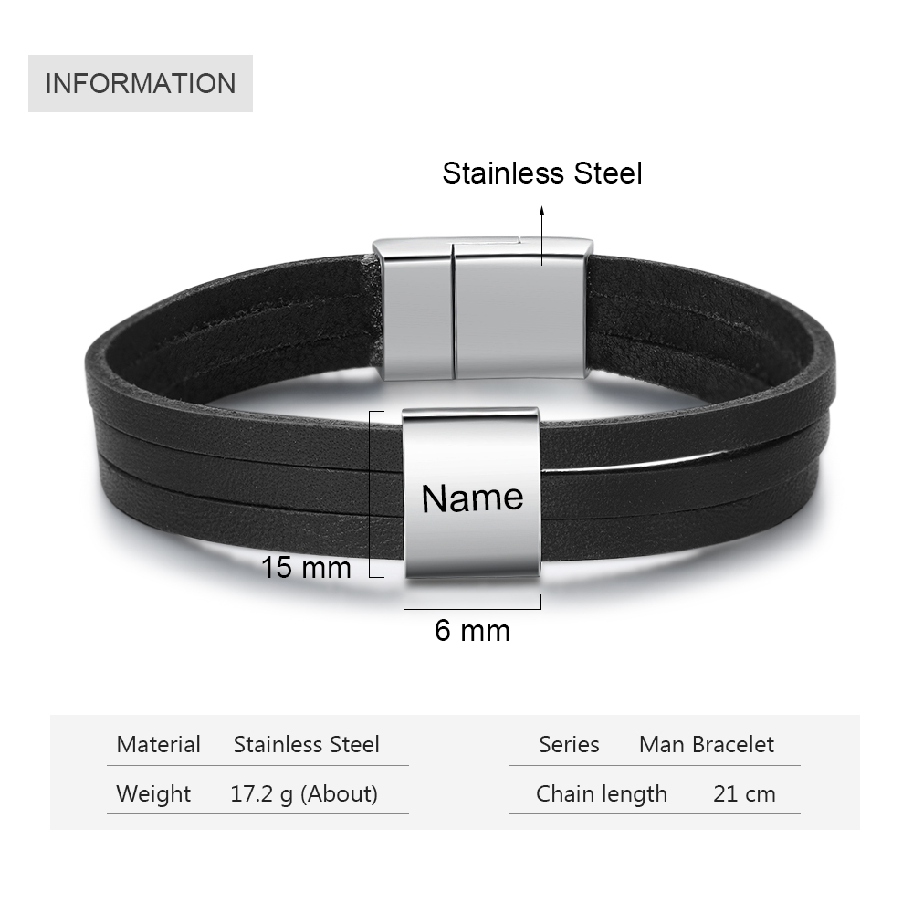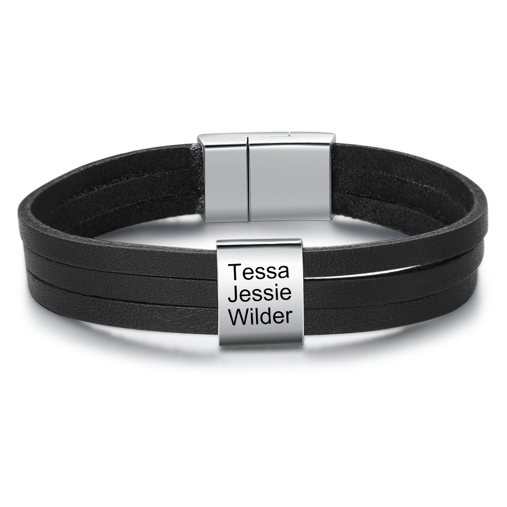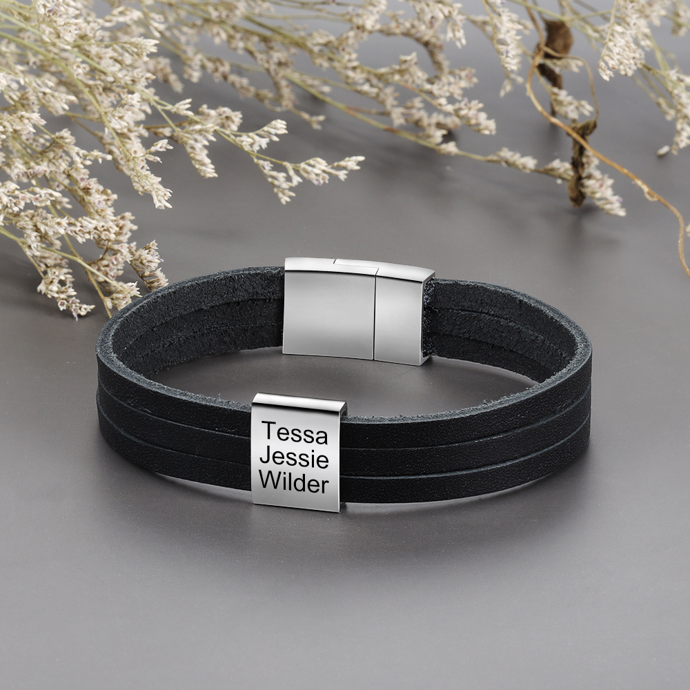Bracelet Homme en cuir 3 PrénomsPersonnalisé
