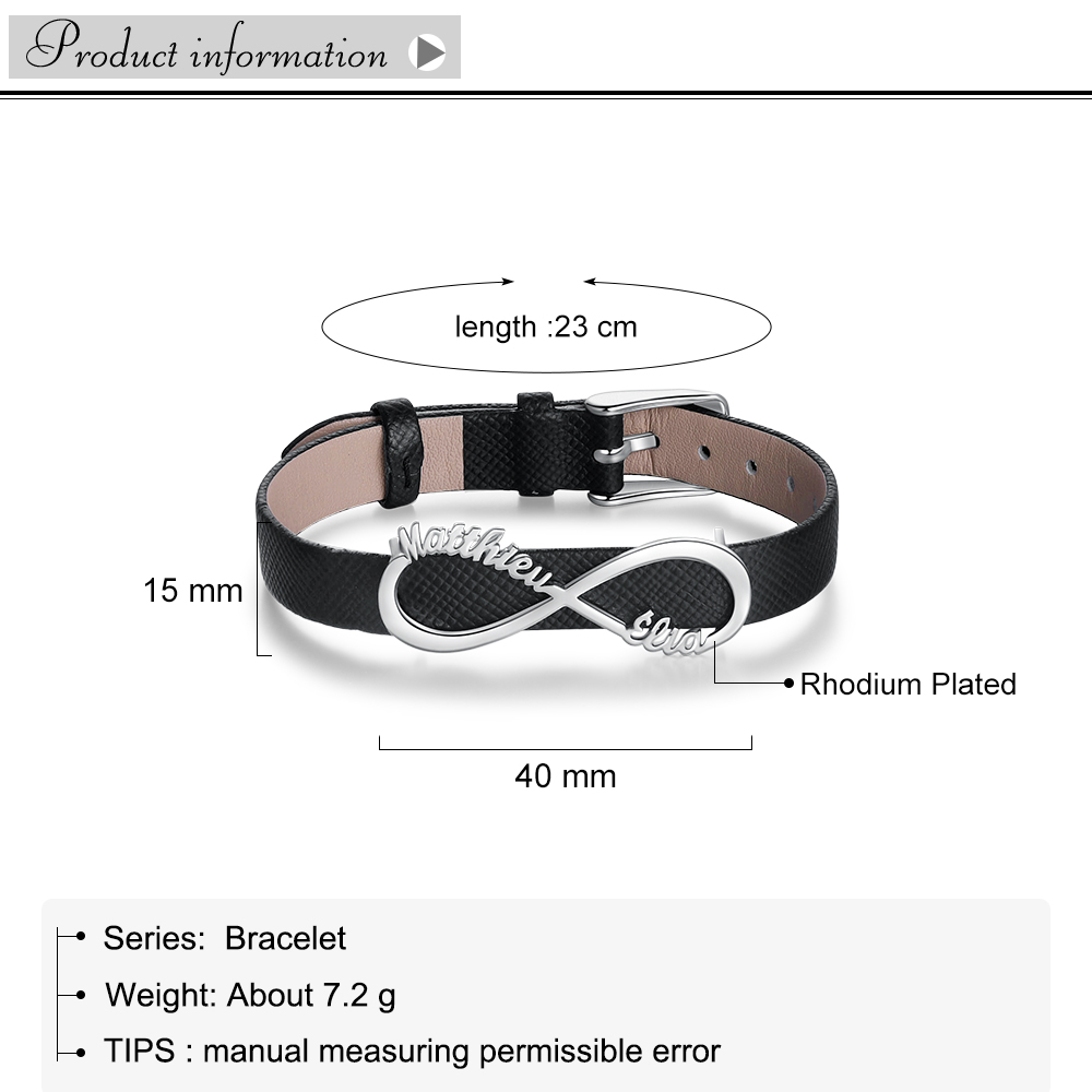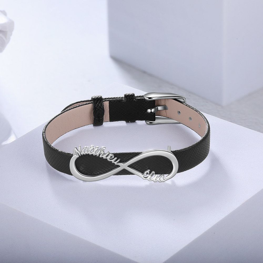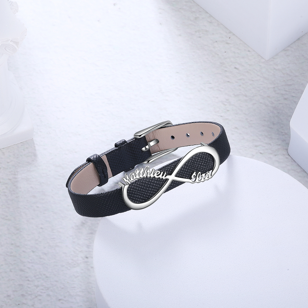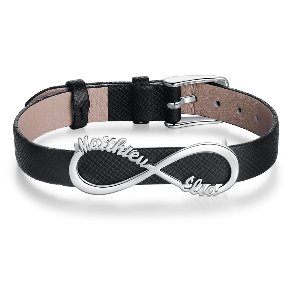 Bracelet Infini Cuir 2 Prénom Personnalisé Bracelet Homme