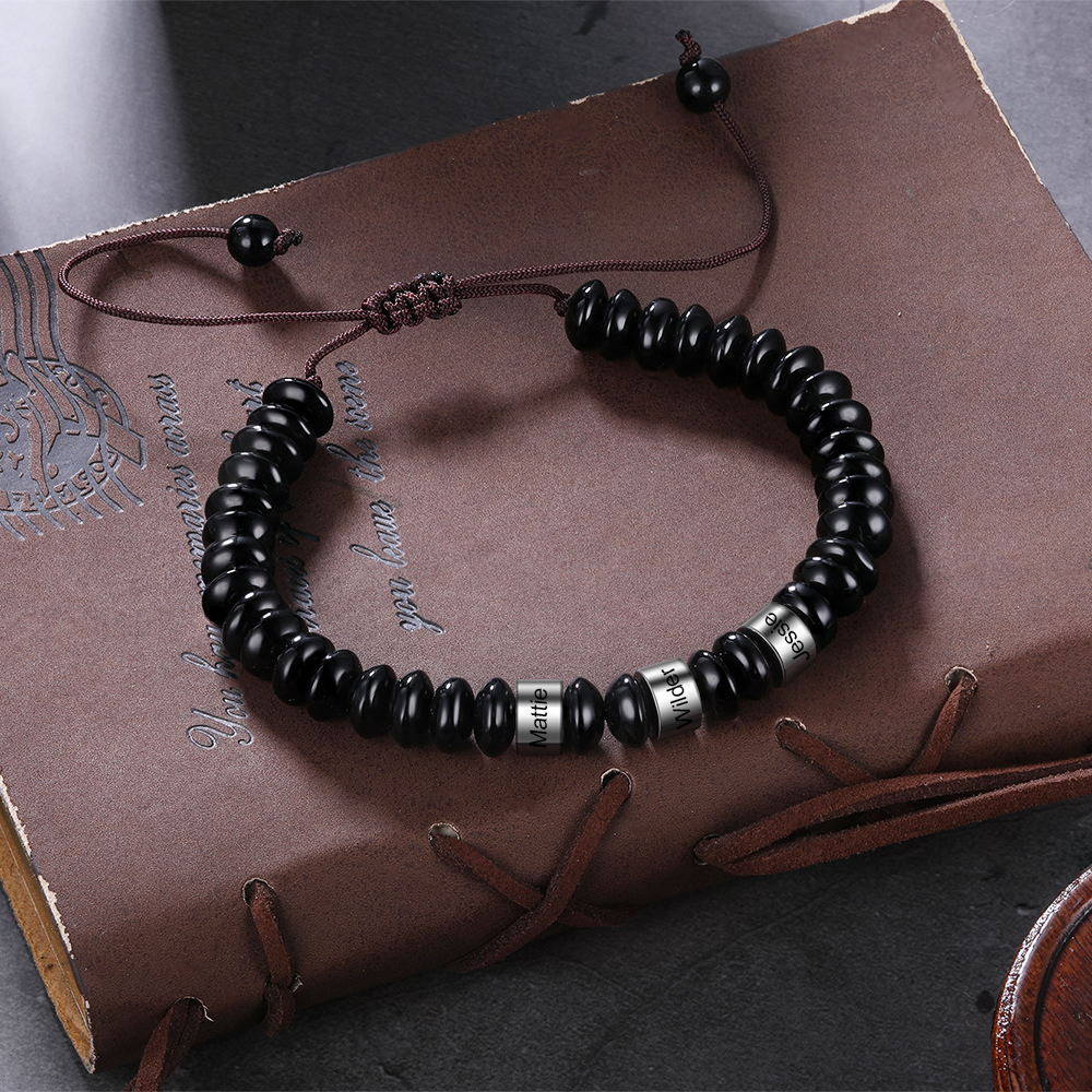 Bracelet Réglable 3 Prénom Personnalisé Bracelet Homme Noeud Coulissant
