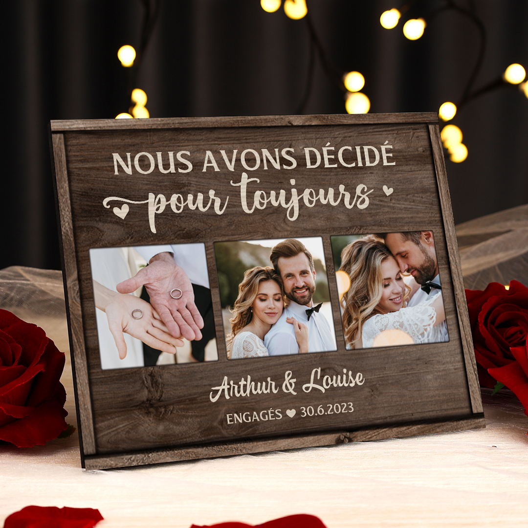 Cadre en Bois 2 Prénoms et 3 Photos Personnalisés avec Date pour Couple Cadeau Saint Valentin