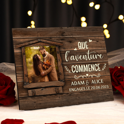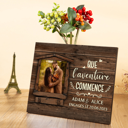 Cadre en Bois 2 Prénoms Personnalisés avec Date et Photo pour Couple Cadeau Saint Valentin