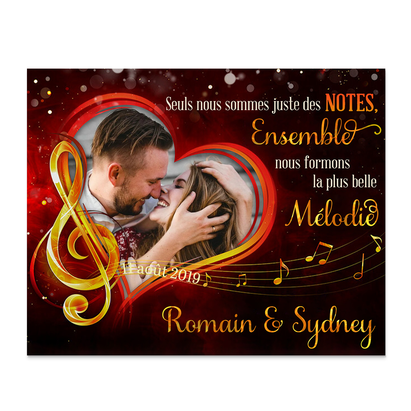 Cadre en Bois 2 Prénoms Personnalisés avec Date et Photo pour Couple Cadeau Saint Valentin