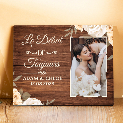 Cadre en Bois 2 Prénoms Personnalisés avec Date et Photo pour Couple Cadeau Saint Valentin
