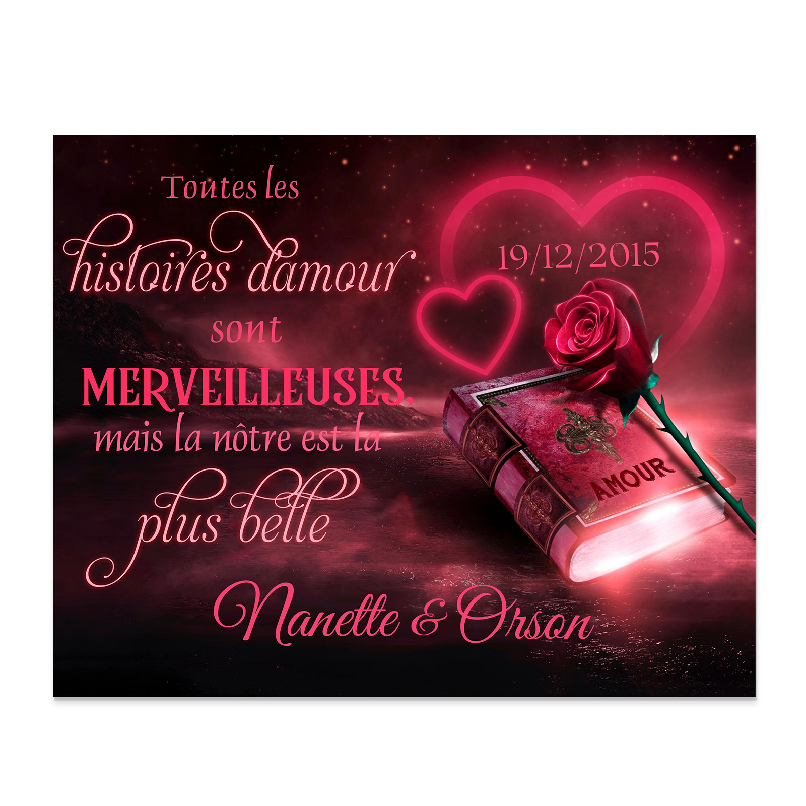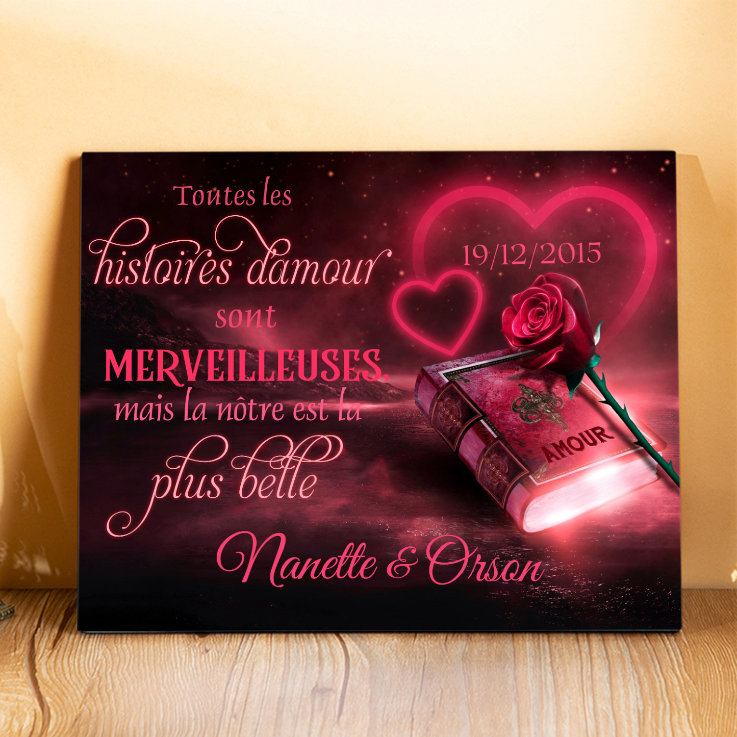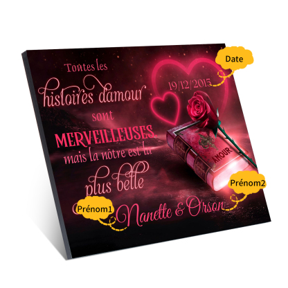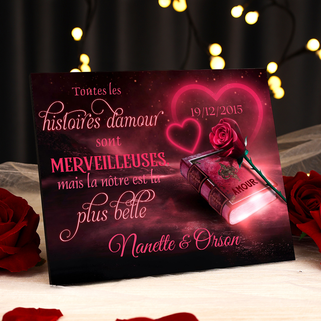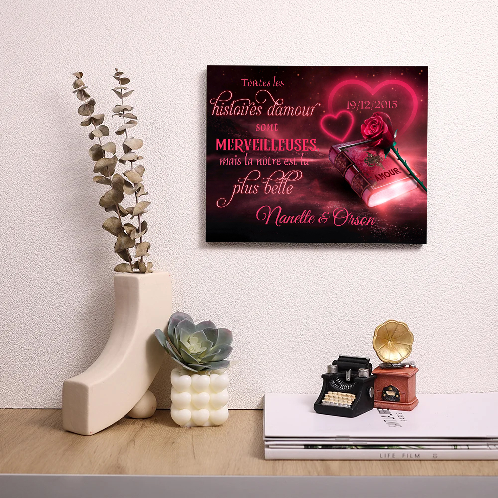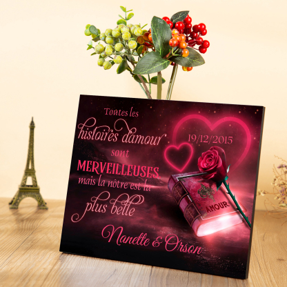 Cadre en Bois 2 Prénoms Personnalisés avec Date pour Couple Cadeau Saint Valentin