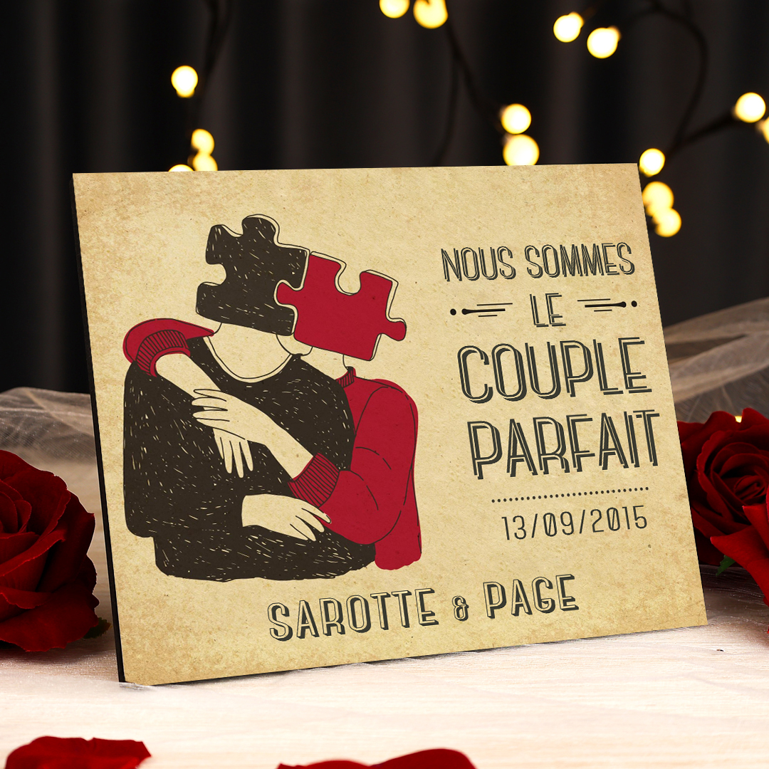 Cadre en Bois 2 Prénoms Personnalisés avec Date pour Couple Cadeau Saint Valentin