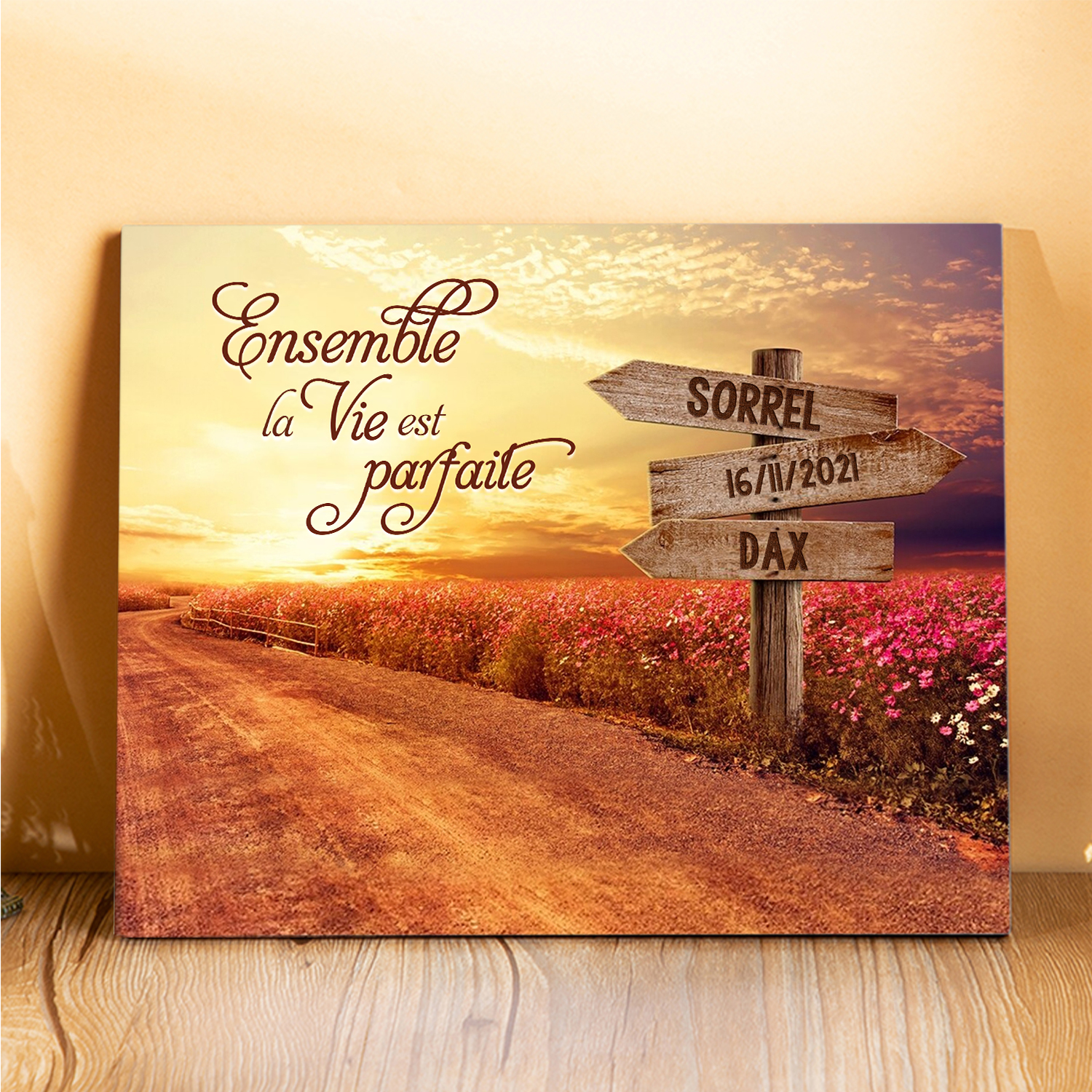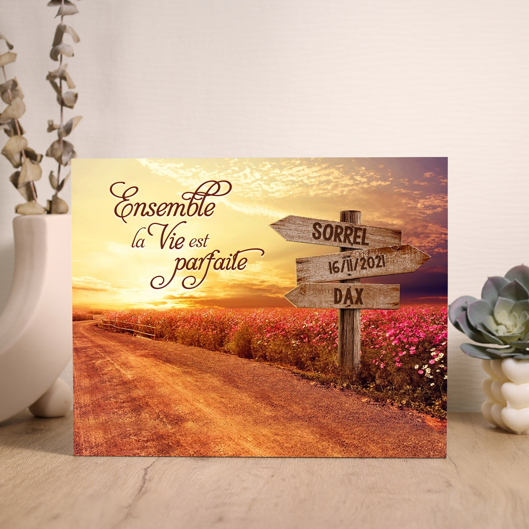 Cadre en Bois 2 Prénoms Personnalisés avec Date pour Couple Cadeau Saint Valentin
