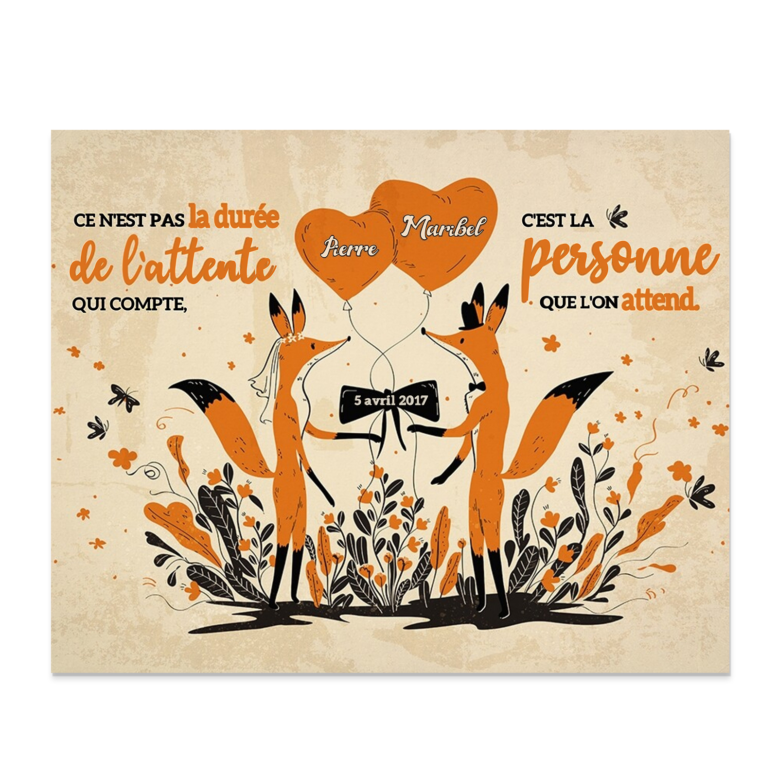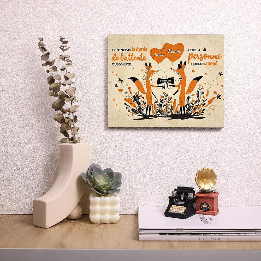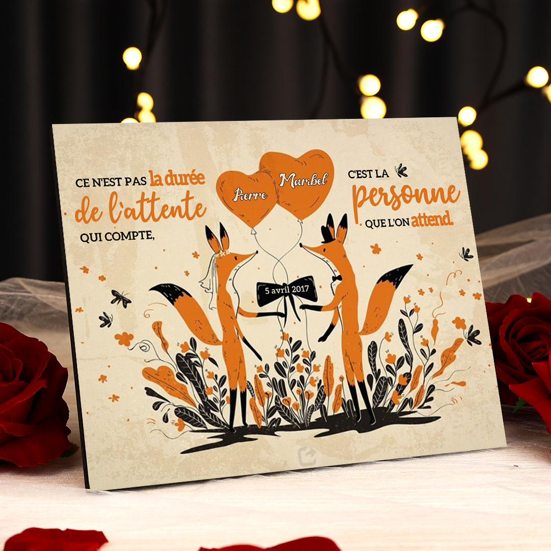 Cadre en Bois 2 Prénoms Personnalisés avec Date pour Couple Cadeau Saint Valentin
