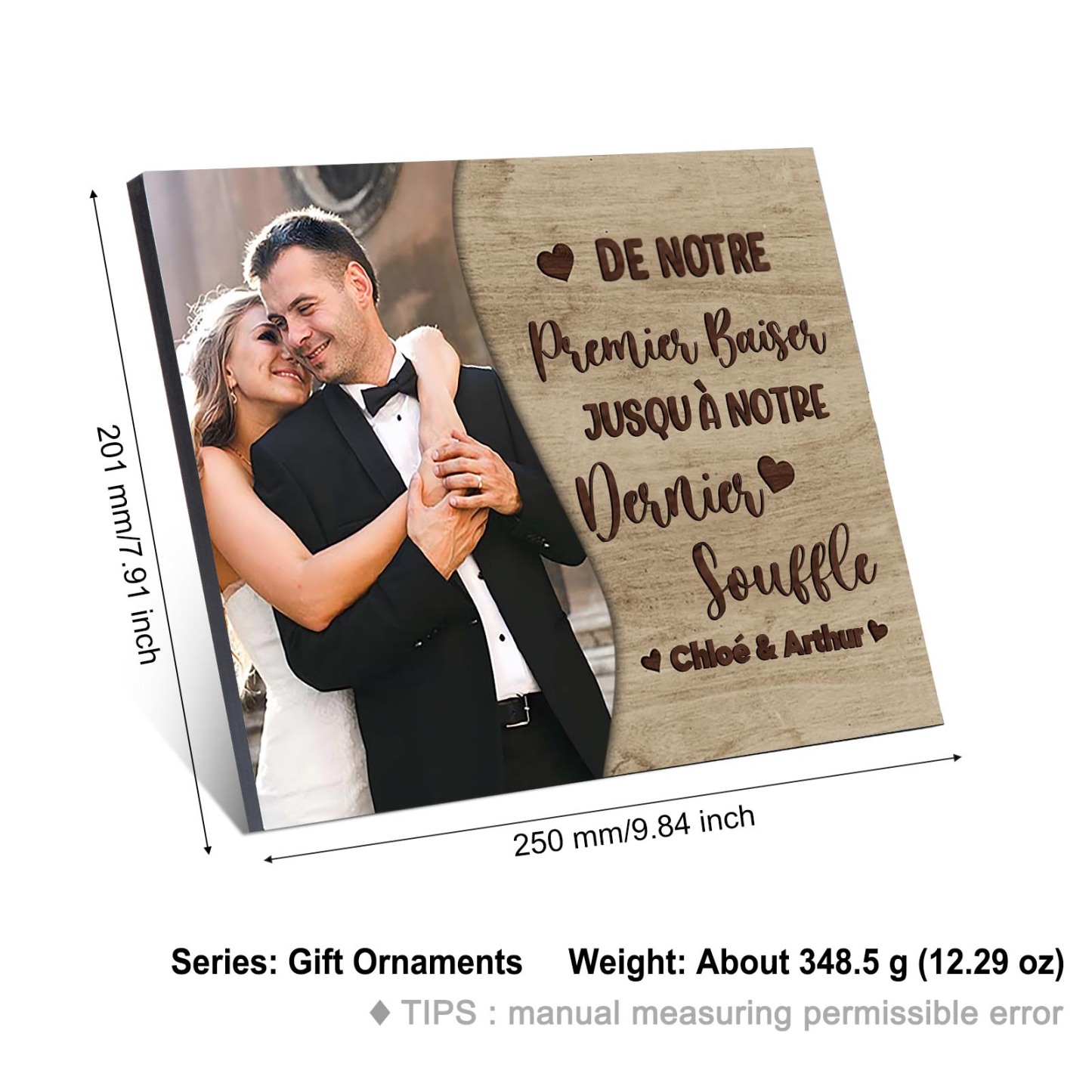 Cadre en Bois 2 Prénoms Personnalisés avec Photo pour Couple