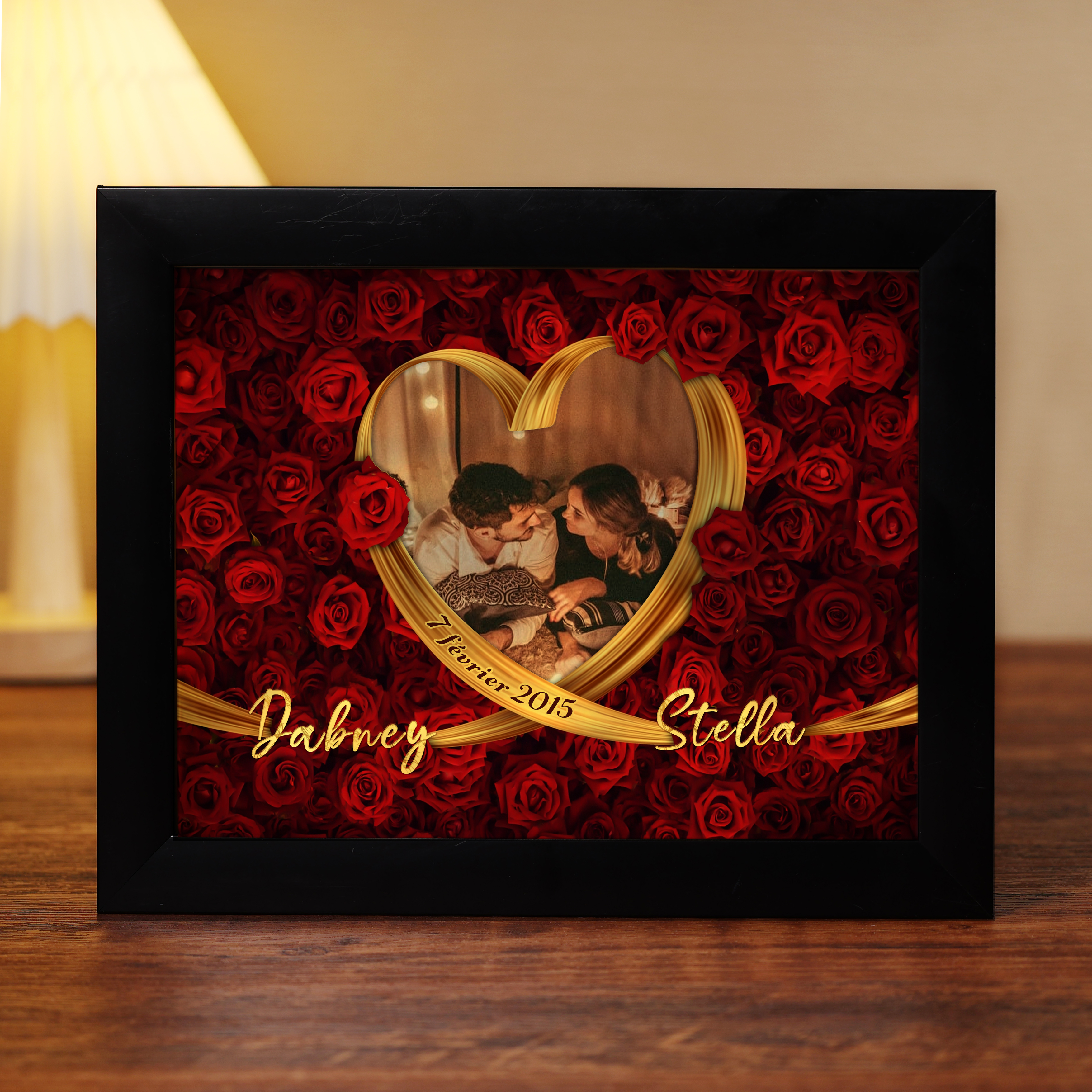 Cadre Photo LED Couple 2 Prénoms et 1 Photo Personnalisés avec Date Cadeau Saint-Valentin