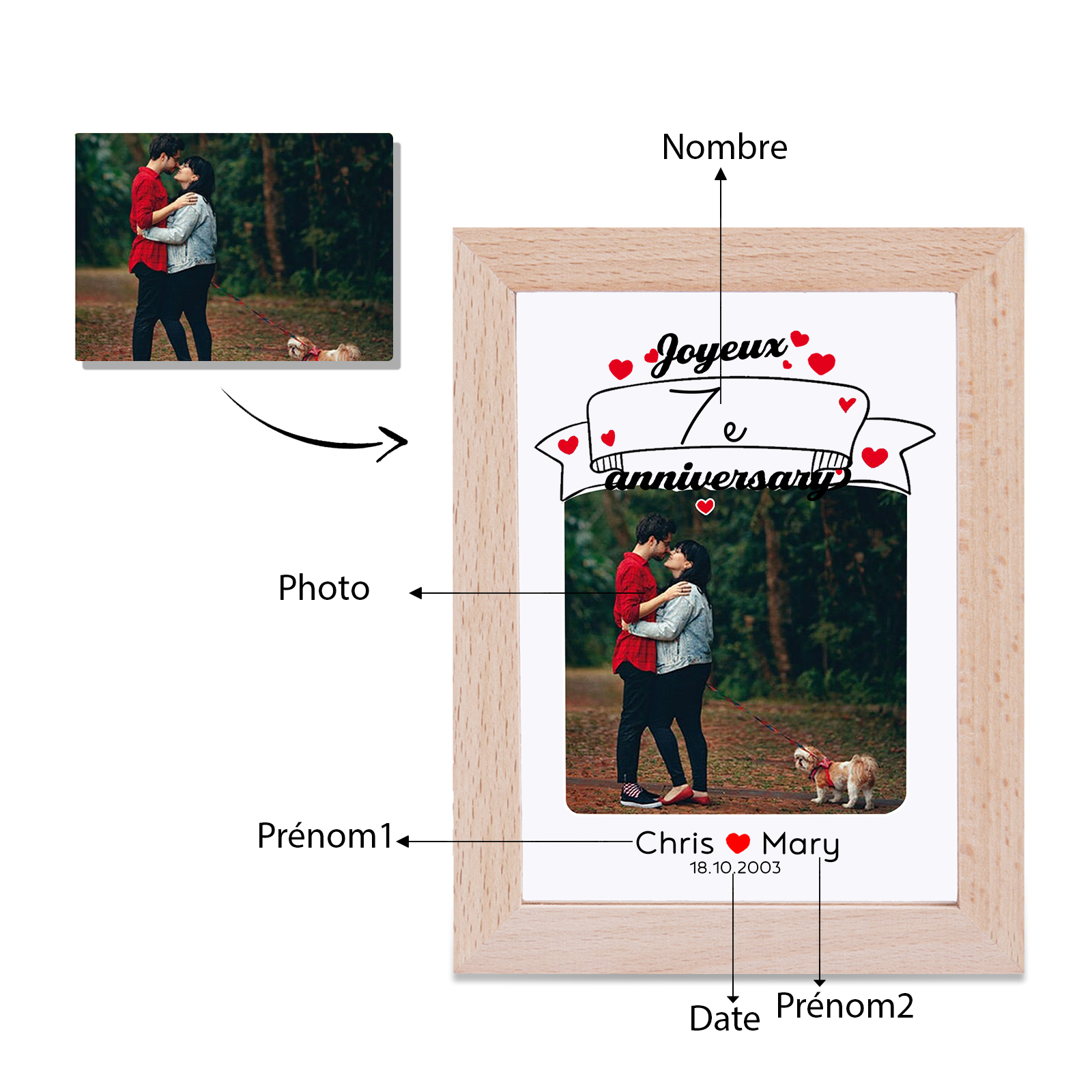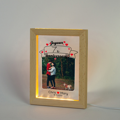 Cadre Photo LED Couple 2 Prénoms et 1 Photo Personnalisés avec Date et Nombre