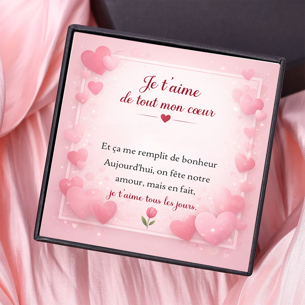 « Je t’aime de tout mon cœur… Aujourd’hui, on fête notre amour, mais en fait, je t’aime tous les jours », elle rappelle chaque jour combien cette personne compte pour vous.