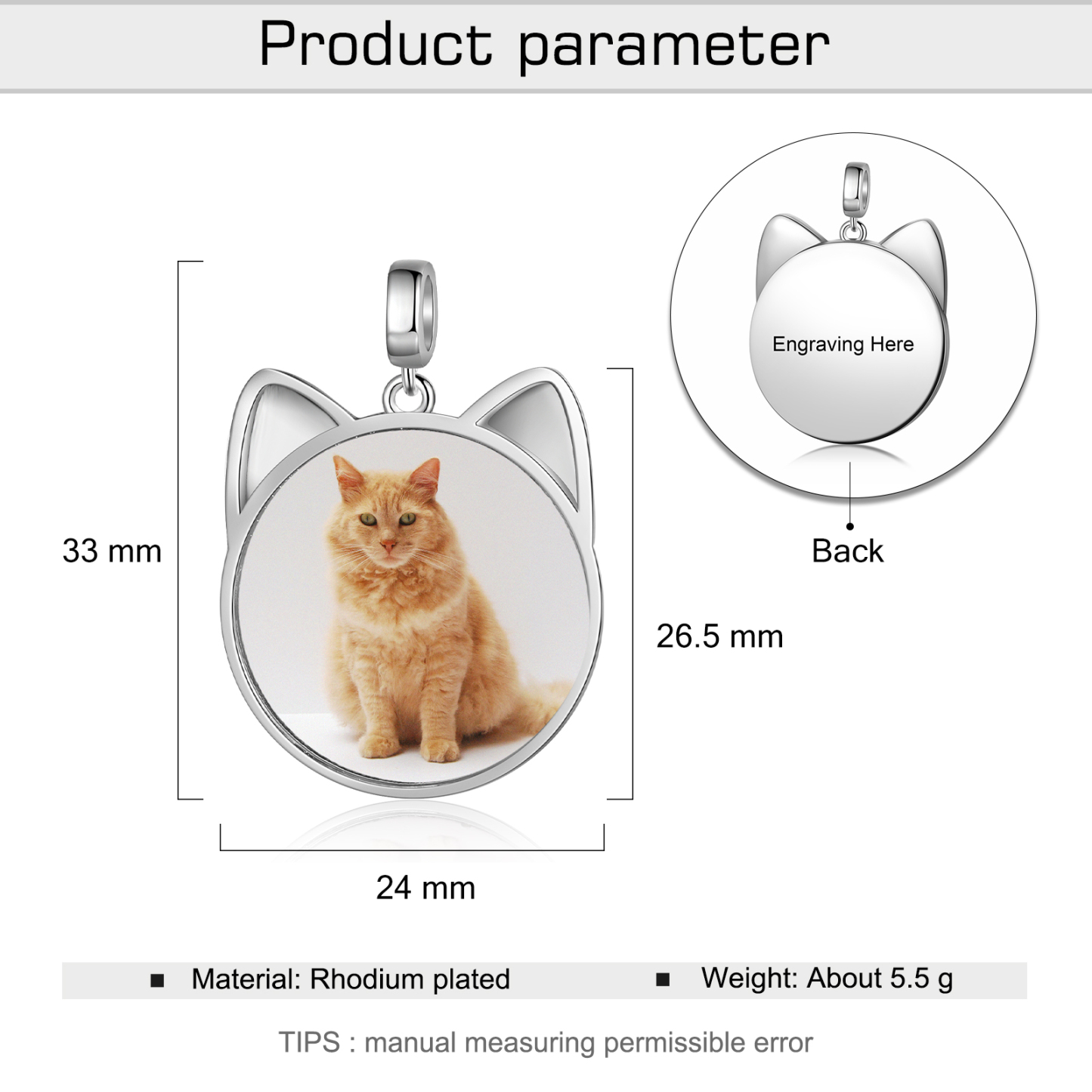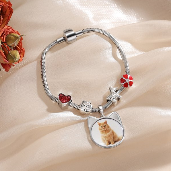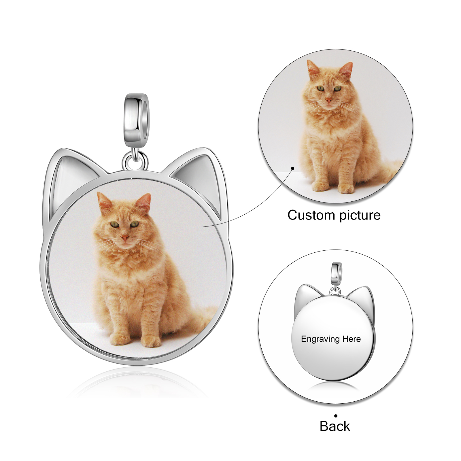 Charm Fait sur mesure photo Personnalisé Pendentif Forme de chat avec texte