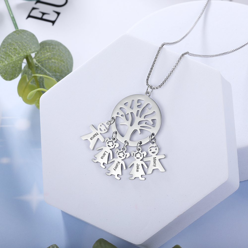 Collier Arbre généalogique avec breloque 5 prenoms