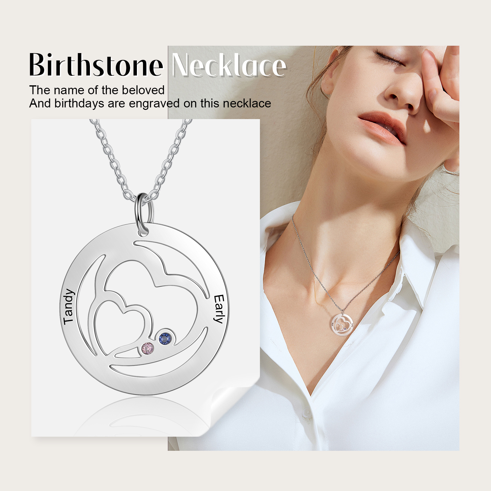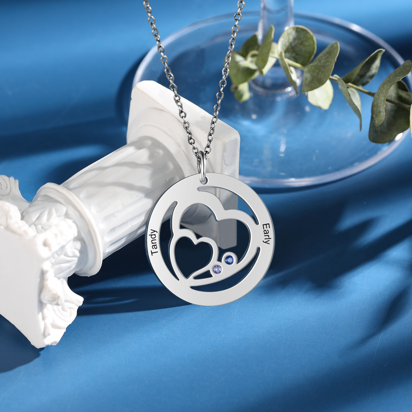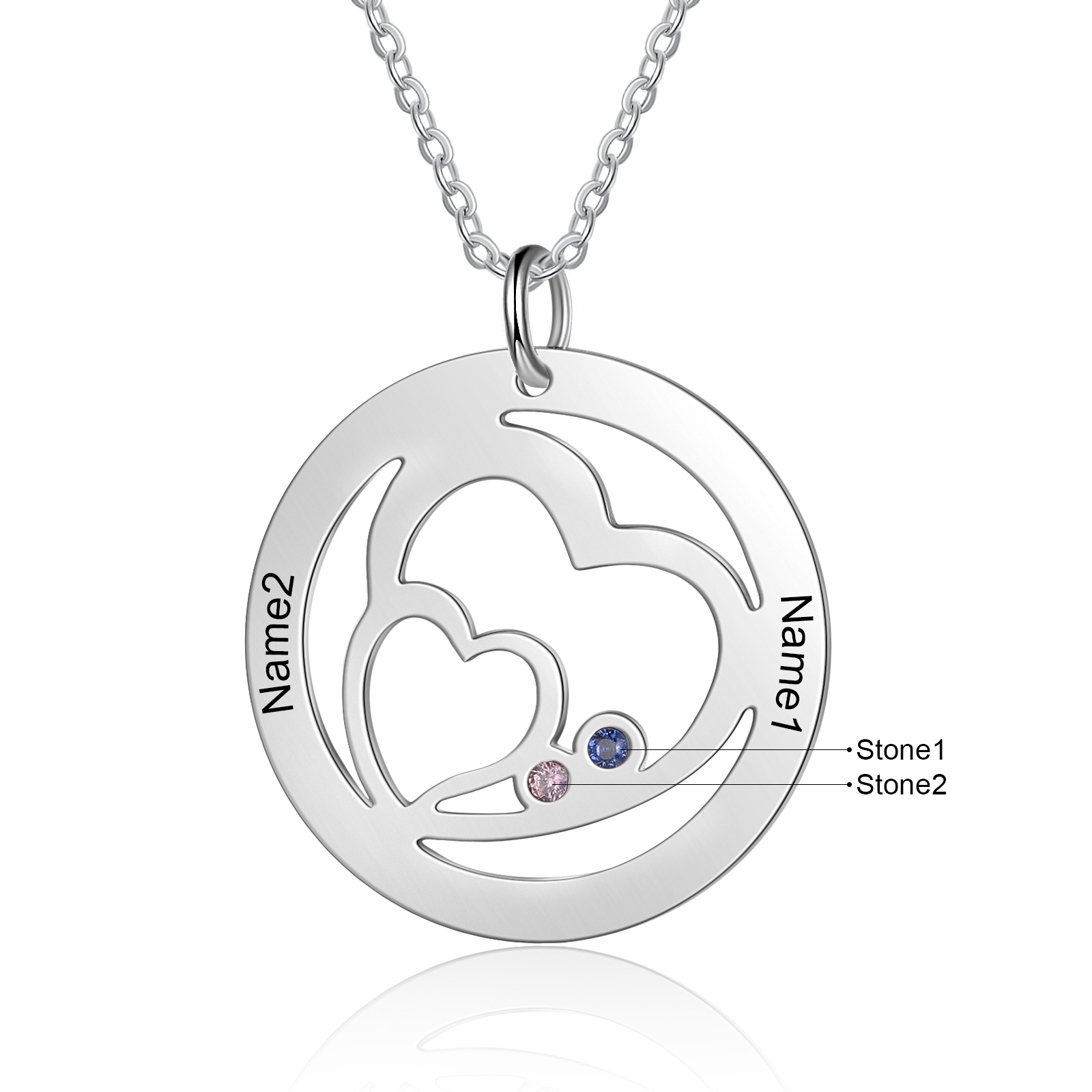 Collier Coeur 2 Prénom Gravé Personnalisé avec 2 pierre naissance