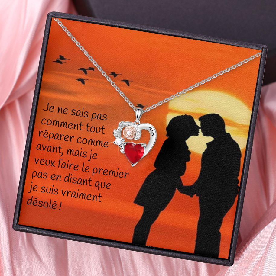 Collier d'Excuses Cœur 1 Prénom Personnalisé avec Pierre de Naissance