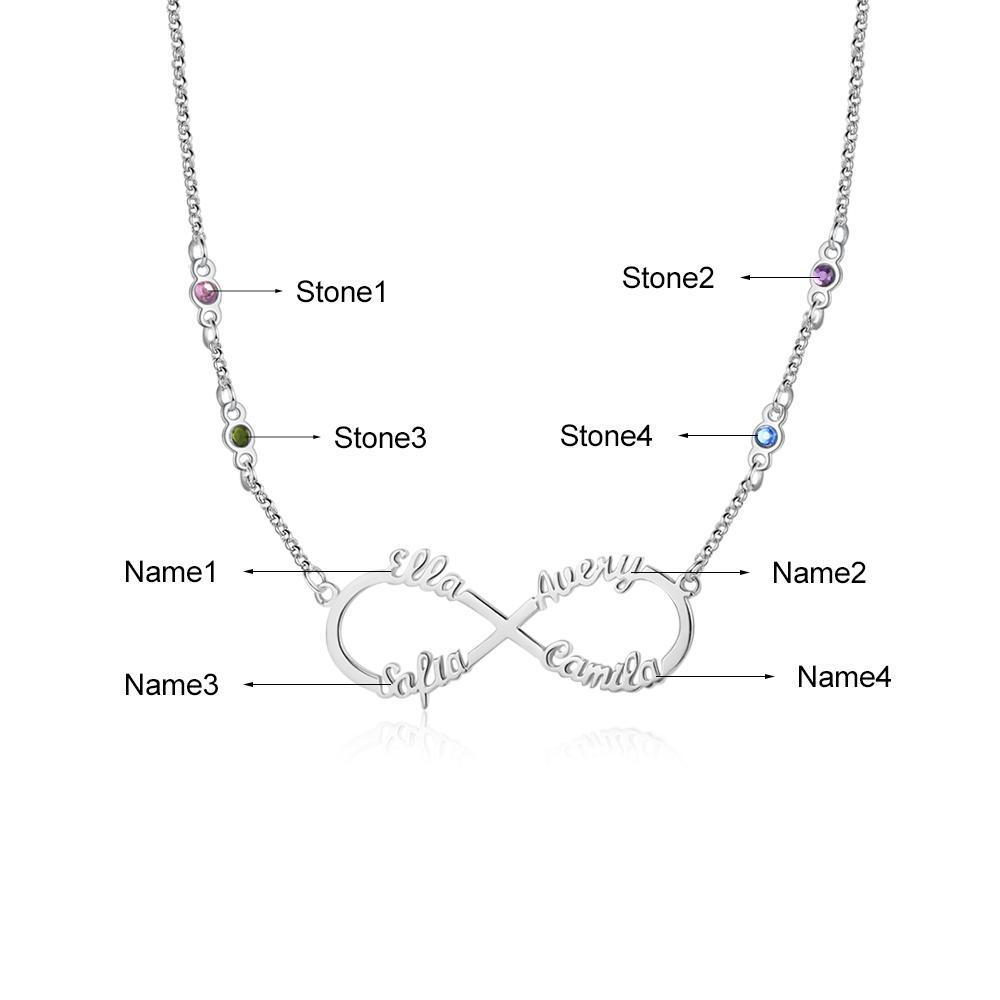 Collier Forever Love Infini 4 Prénoms 4 pierre de naissance Pour Elle