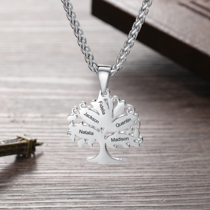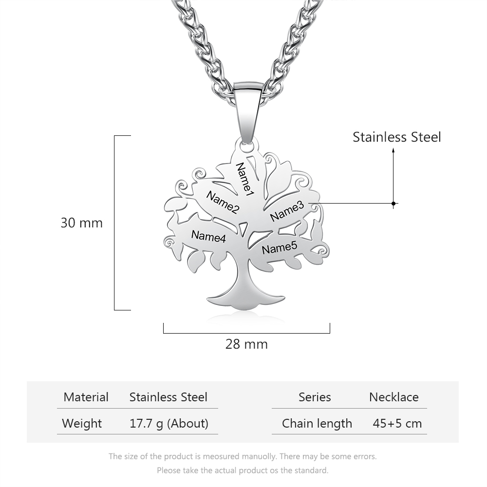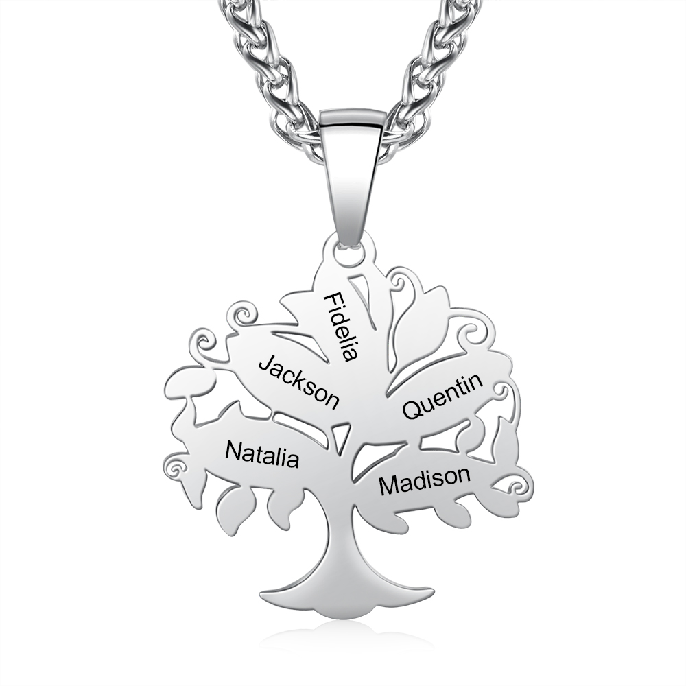 Collier gravé Arbre de Vie Arbre Généalogique 5 Prénom Personnalisé