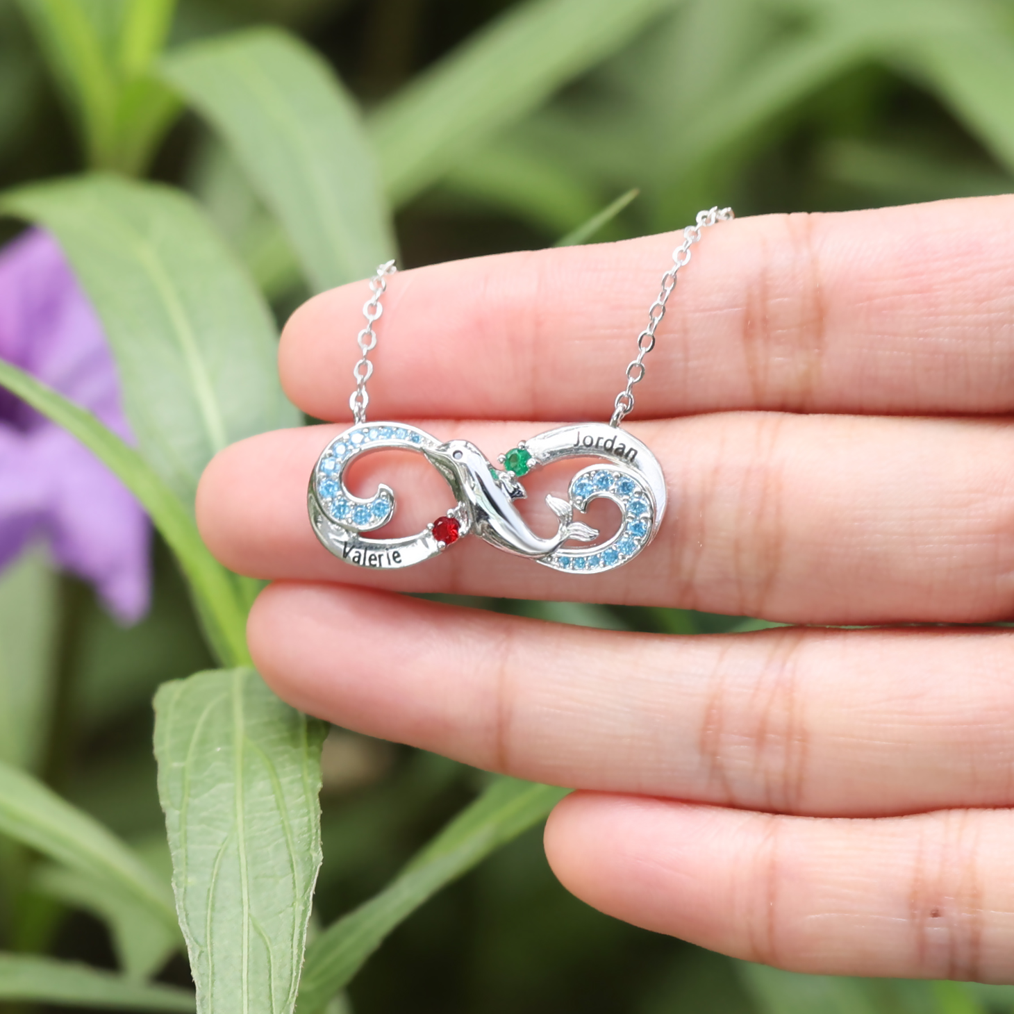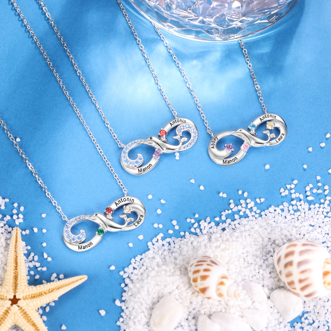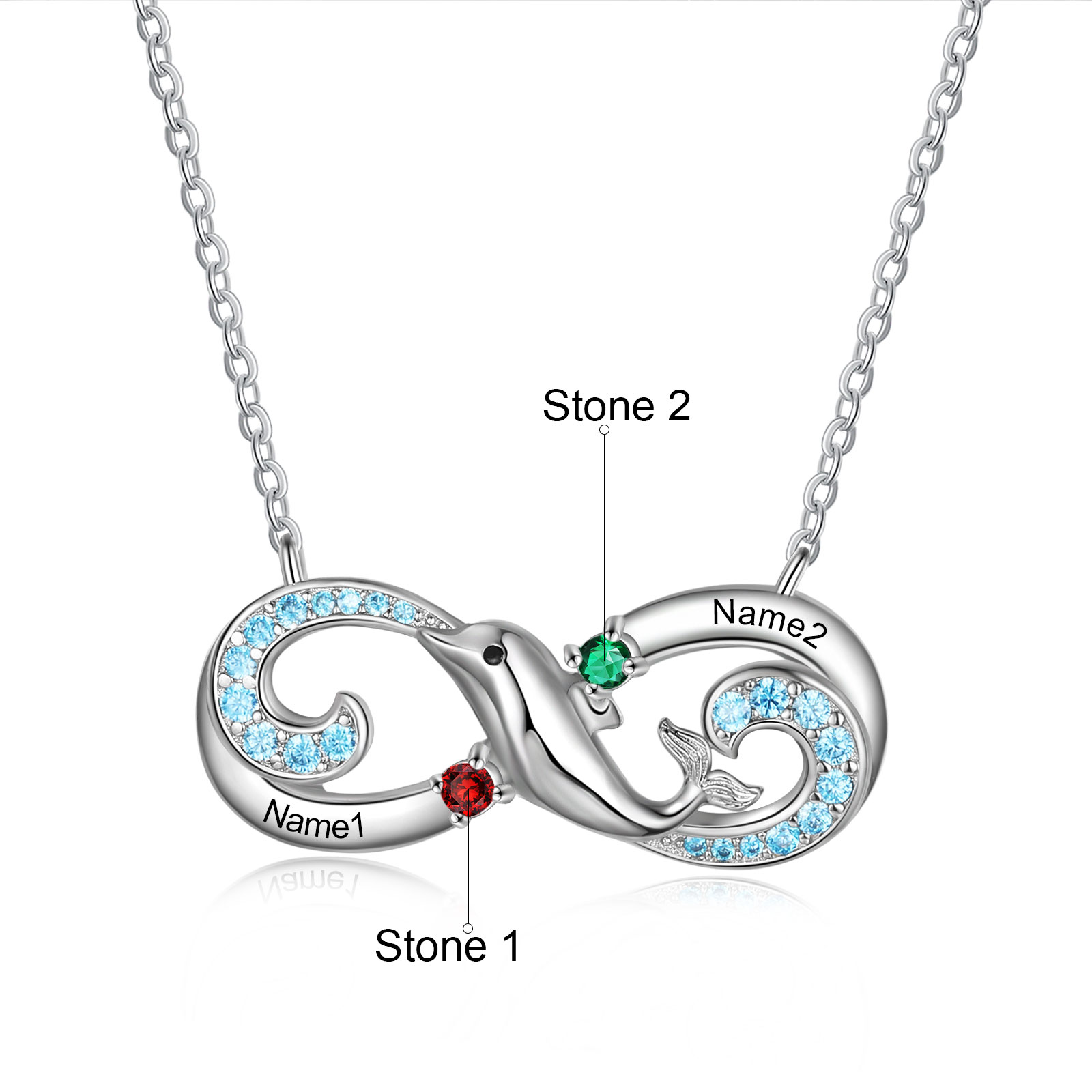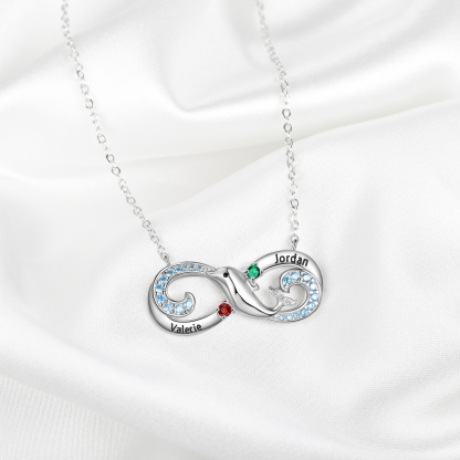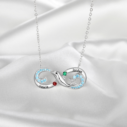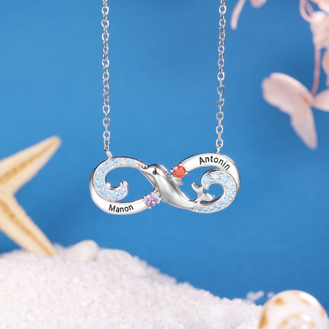 Collier Infini et dauphin 2 graver Prénom Personnalisé avec 2 Pierre de Naissance