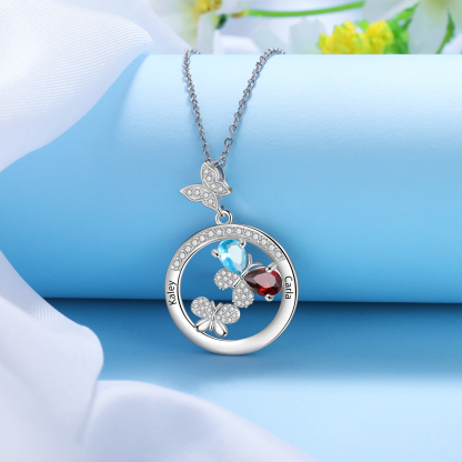 Collier Papillon 2 Prénoms 2 pierre de naissance