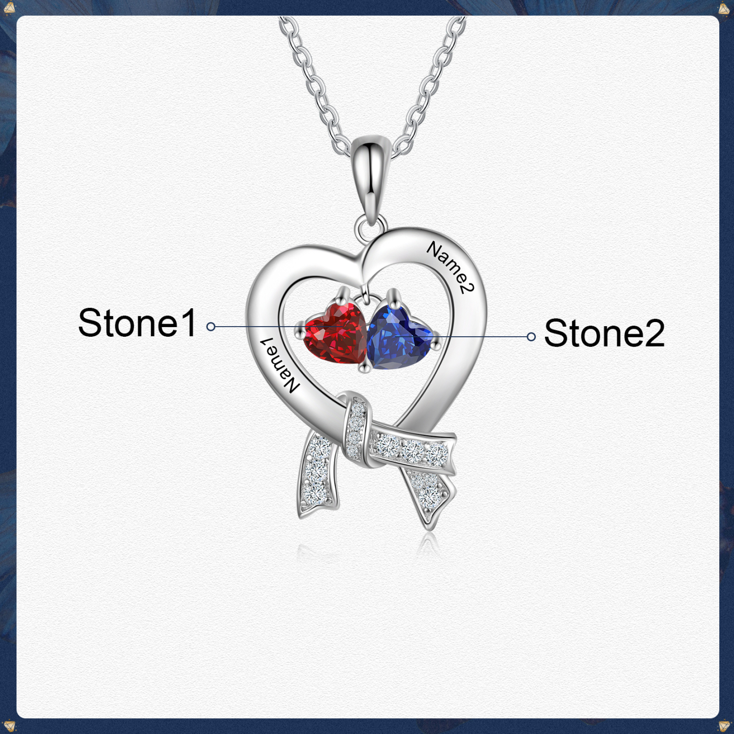 Collier Prénom cœur Argent 925 2 Prénom 2 pierre de naissance