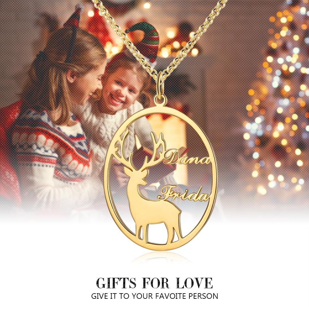 Collier Prénom Personnalisé Cerf Noël 2 Prénoms