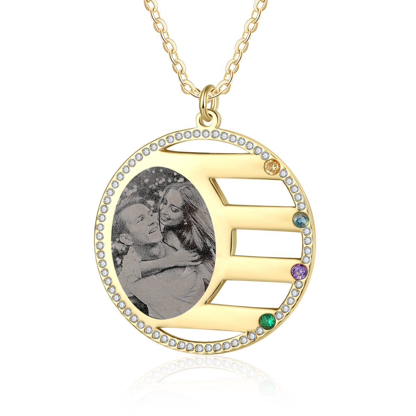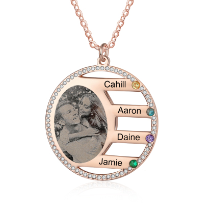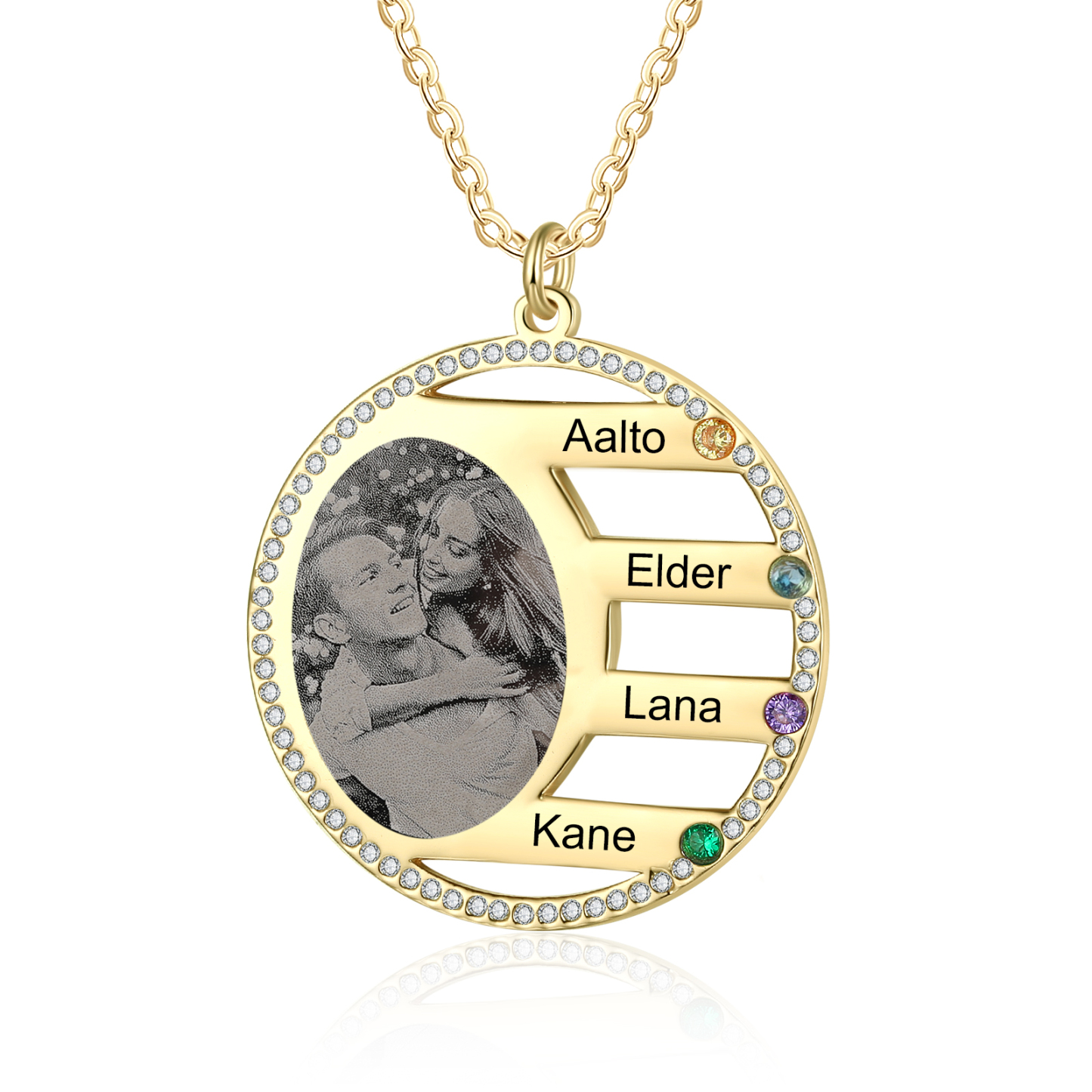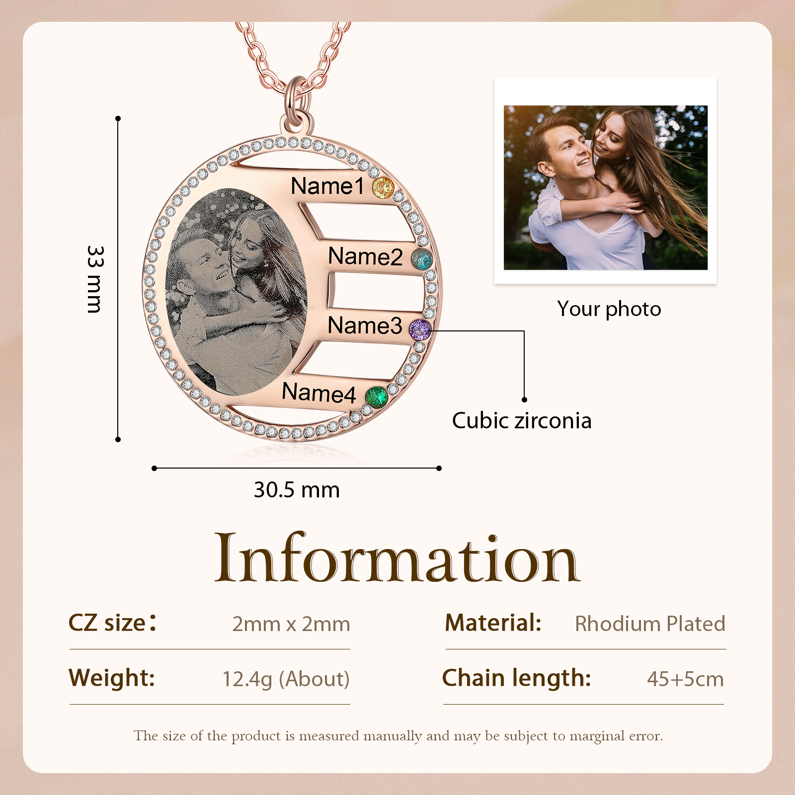 Collier 4 Prénom Personnalis avec 4 Pierre De Naissance et 1 photo