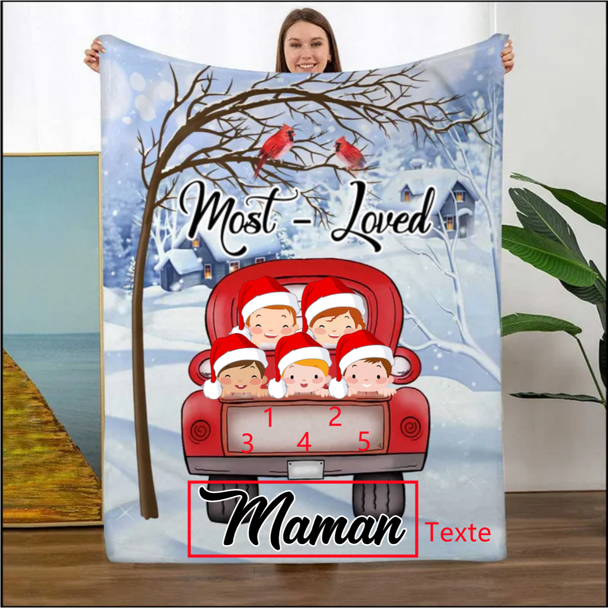 Couverture plaids polaire auto 5 Prénoms Personnalisés avec texte