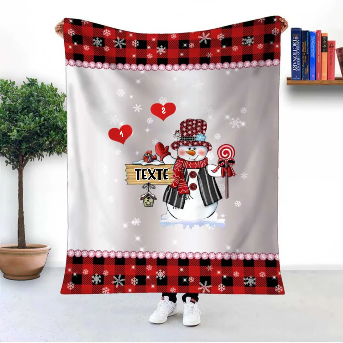 Couverture plaids polaire bonhomme de neige 2 Prénoms Personnalisé avec texte