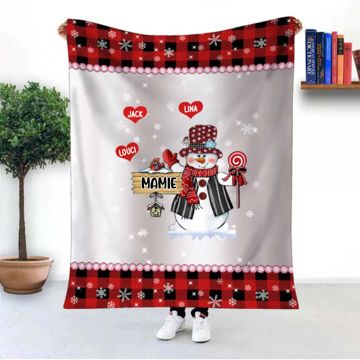 Couverture plaids polaire bonhomme de neige 3 Prénoms Personnalisé avec texte