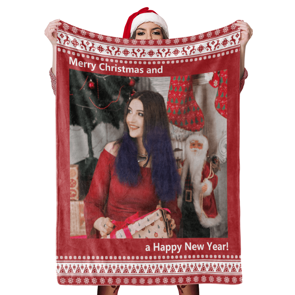 Couverture Flanelle plaids polaire de Noël Photo Personnalisée avec 2 textes