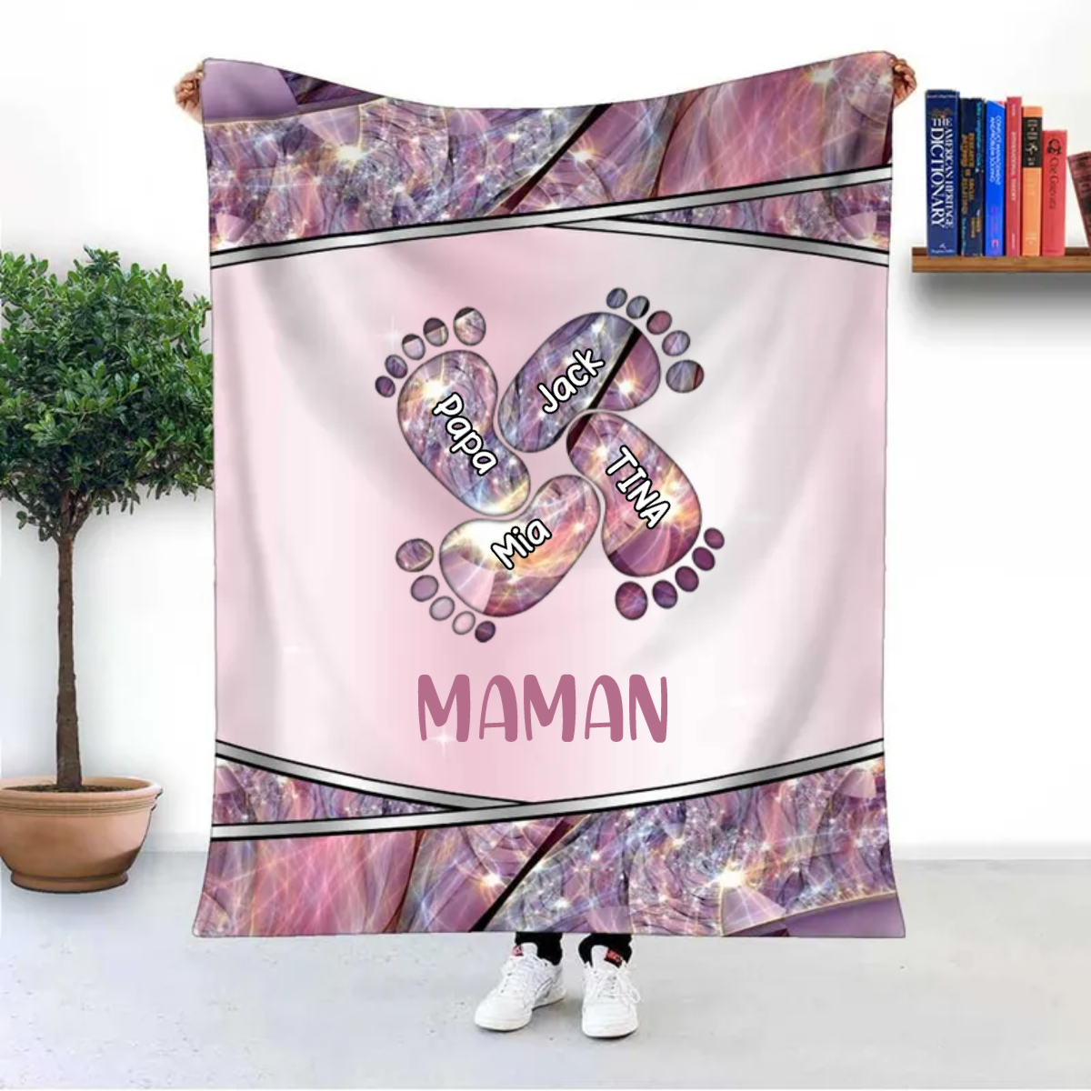Couverture plaids polaire Pieds de Bébé 4 Prénoms Personnalisé avec texte