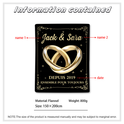 Couverture Plaids Polaire Bague 2 Prénoms Personnalisés avec Année pour Couple
