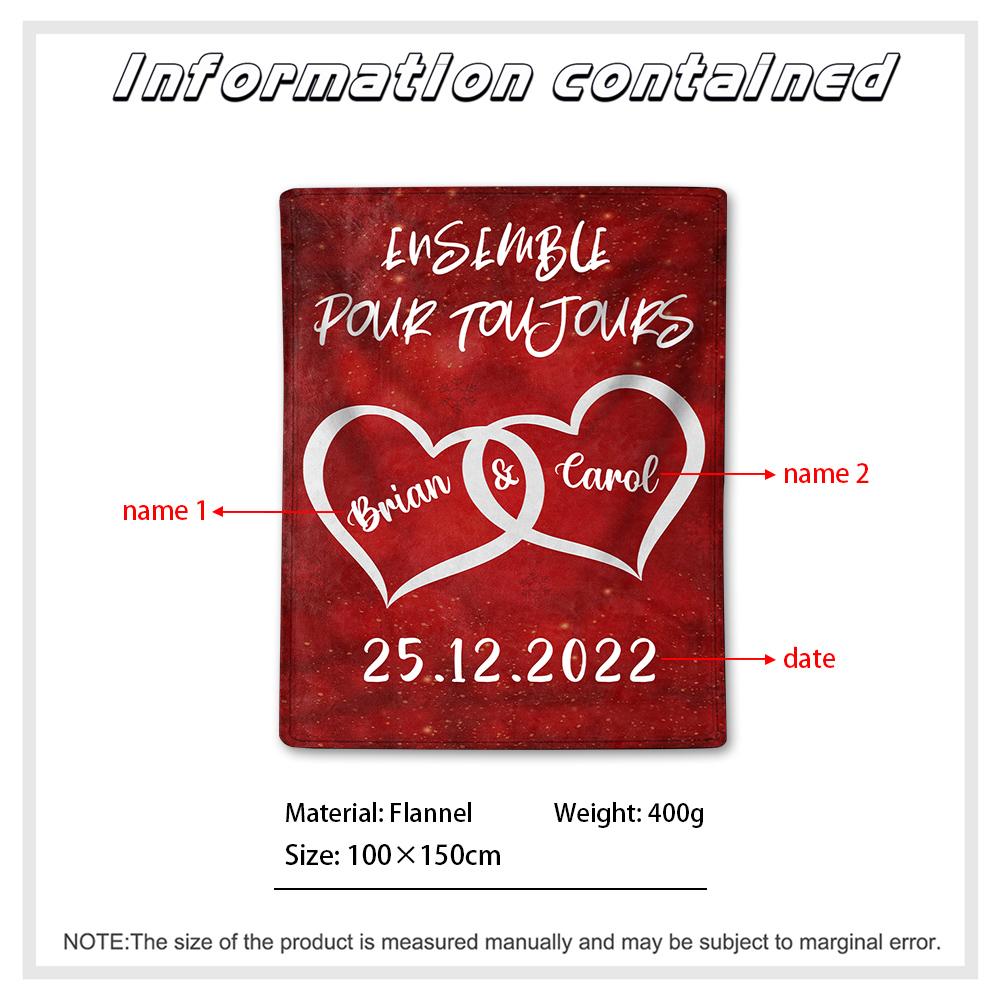 Couverture Plaids Polaire Cœur 2 Prénoms Personnalisés avec Date pour Couple