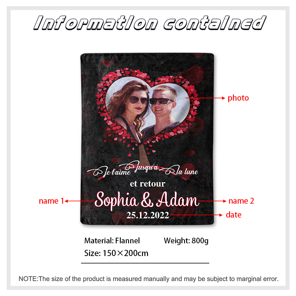 Couverture Plaids Polaire Cœur 2 Prénoms Personnalisés avec Photo et Date pour Couple