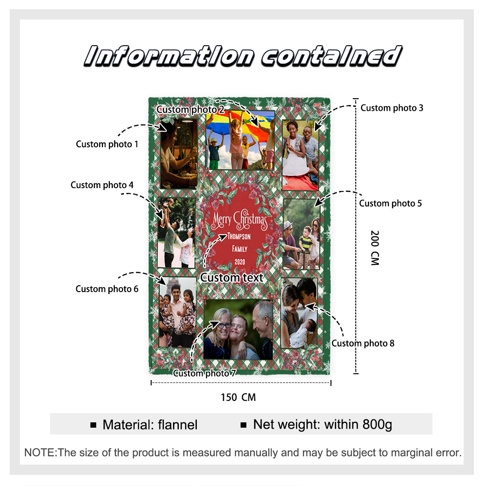 Couverture plaids polaire de Noël 8 photos Personnalisé avec texte