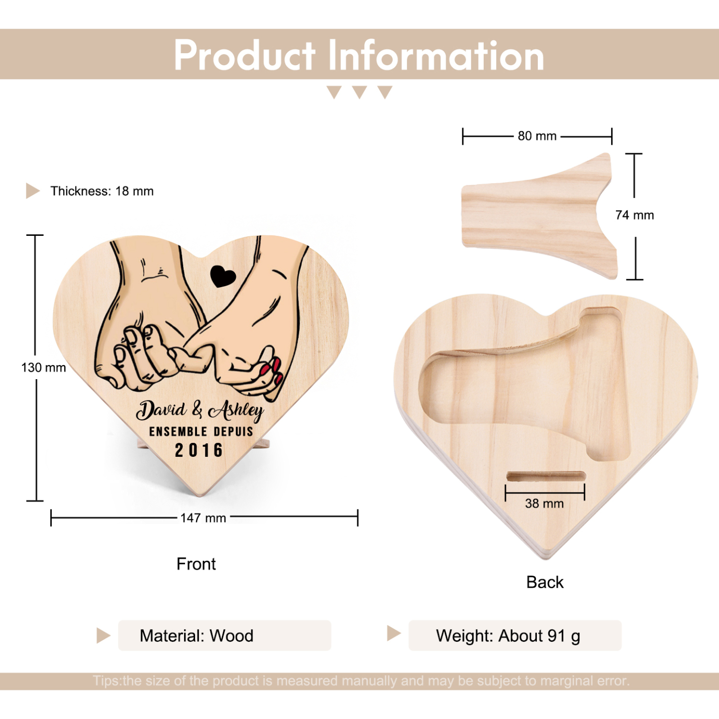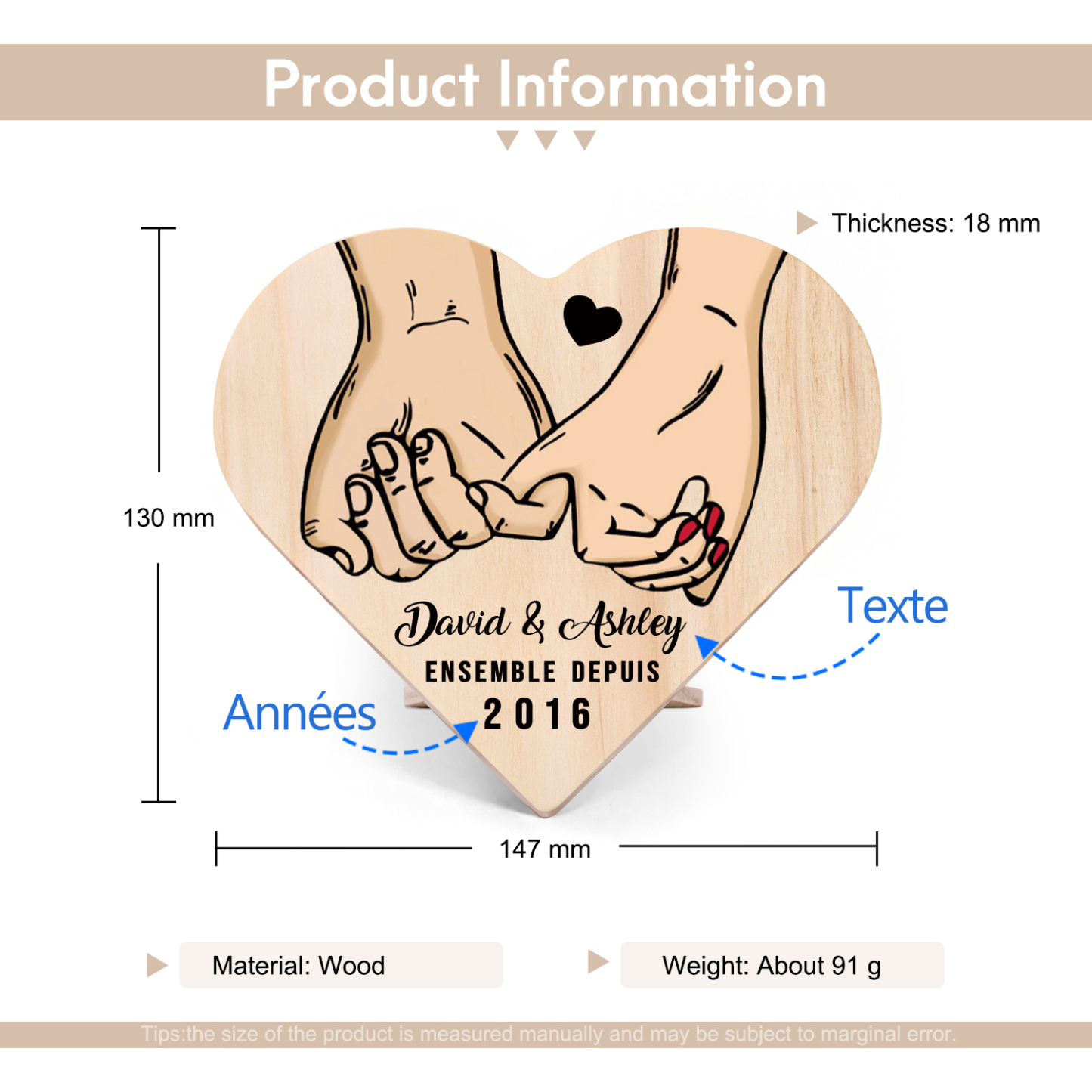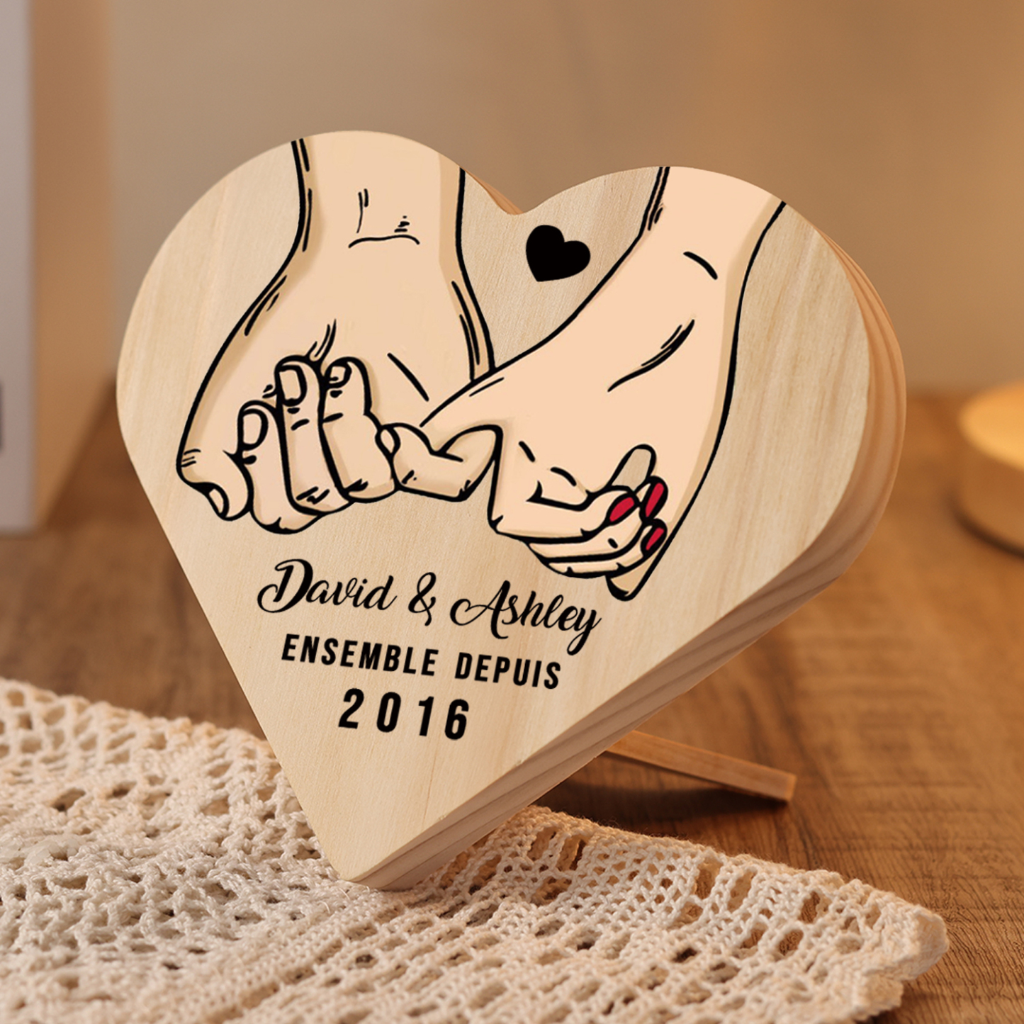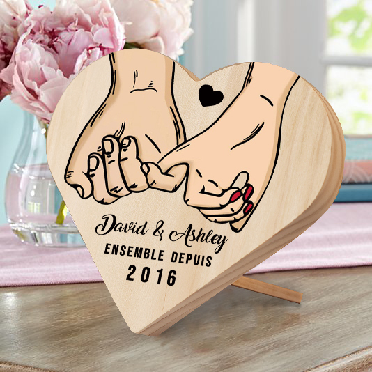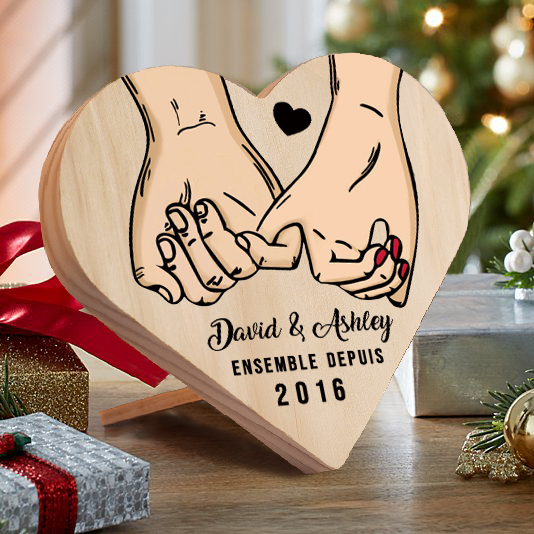 Décoration en bois à motif promesse de petit doigt personnalisée avec texte et année