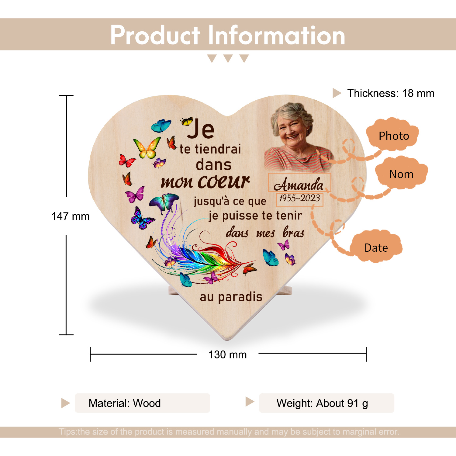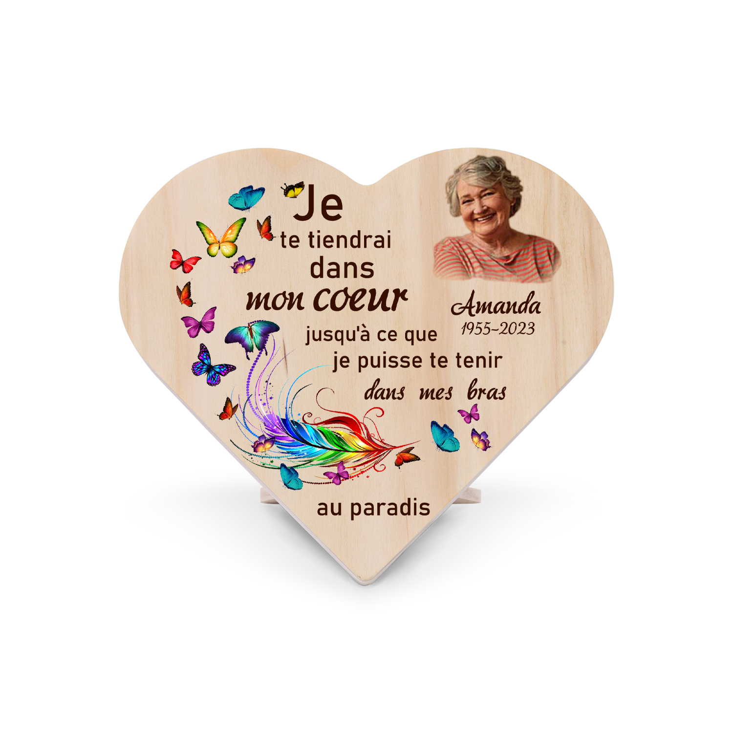 Décoration En bois Papillon graver Prénom personnalisé avec photo et date