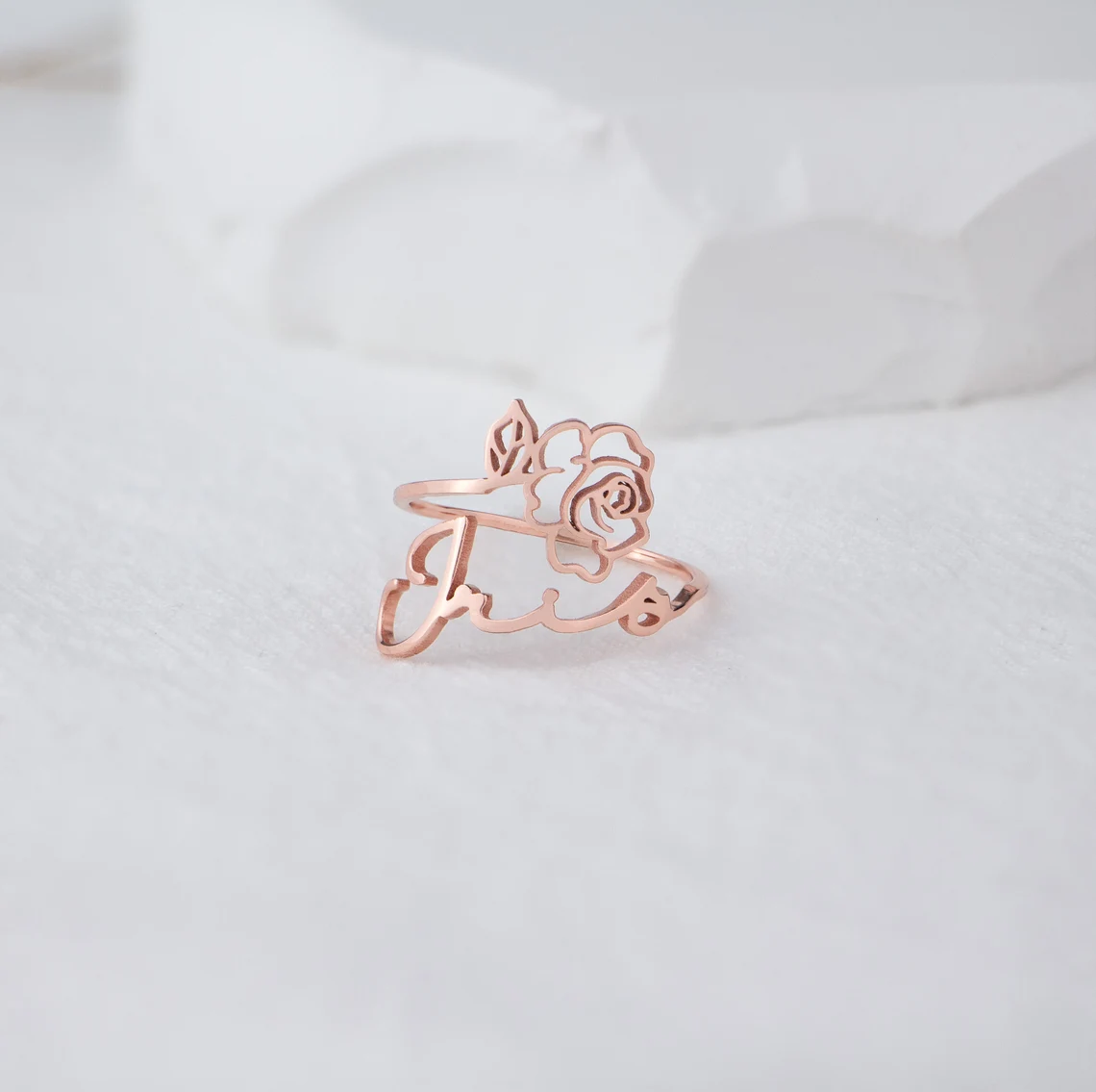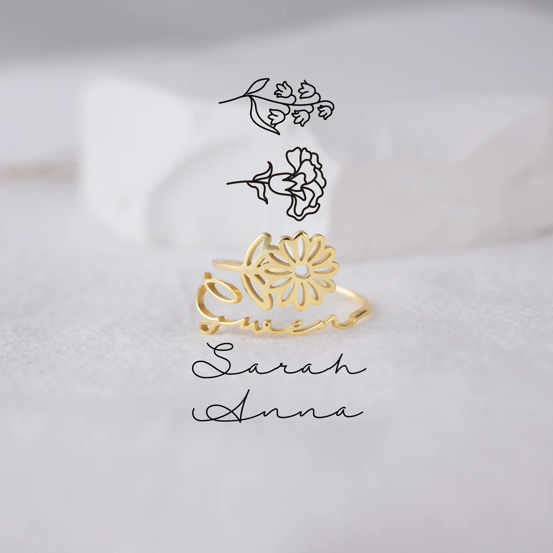 Février Bague Ajustable prénom personnalisé fleur de naissance