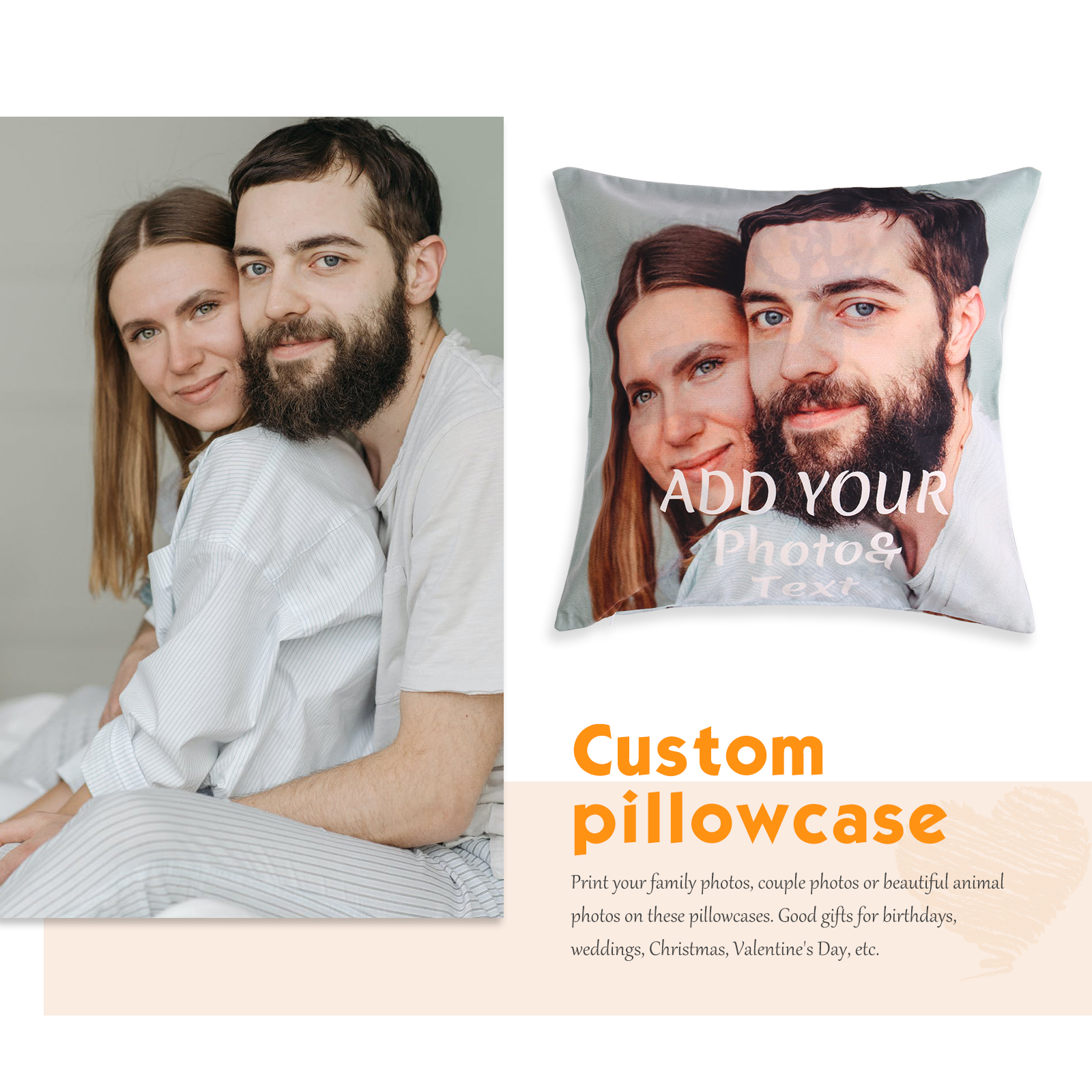 Housse de Coussin Texte et Photo Personnalisé 45x45cm Taie d'oreiller