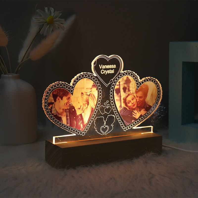 Lampe de chevet LED en forme de coeur 2 Photo avec 2 Prénoms