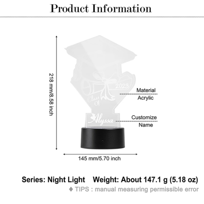 Lampe de chevet LED Lumières Diplômé Prénom personnalisé