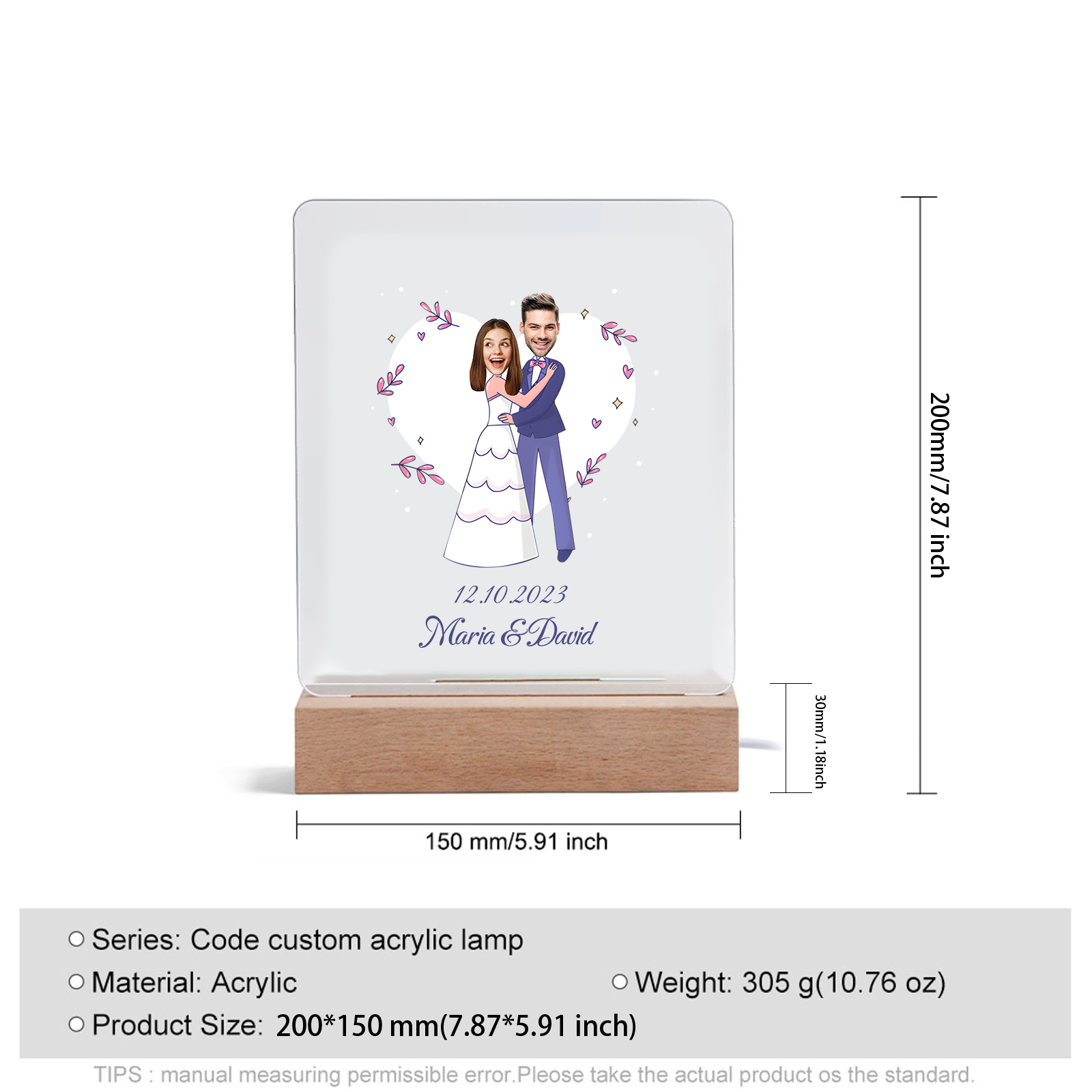 Lampe de chevet Mariage 2 Prénoms et Photos Personnalisés avec Date LED Lumières pour Couple