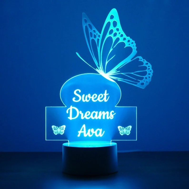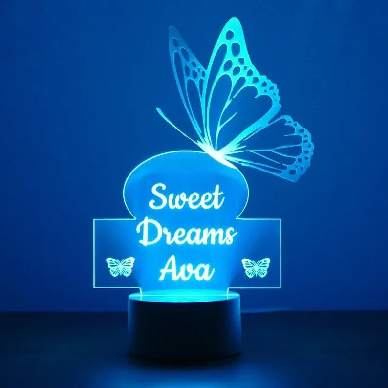 Lampe de chevet papillon 3 prénom personnalisé LED Lumières coloréese